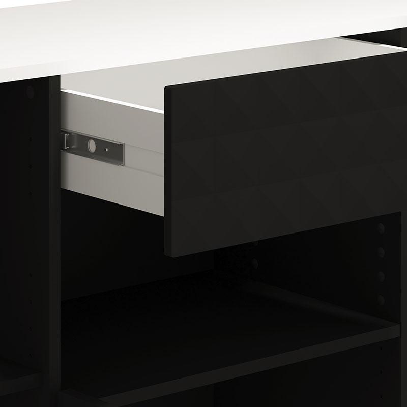 Μοριοσανίδα με πιστοποιημένη επικάλυψη μελαμίνης Ε1, και MDF χειρολαβή μαύρου ματ χρώματος.