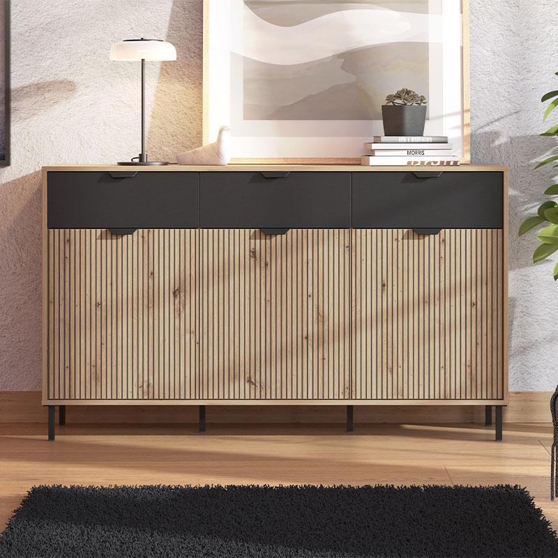 ΚΟΜΟΤΑ-ΜΠΟΥΦΕΣ MAYENNE 3K3F ARTISAN OAK-ΜΑΥΡΟ MAT 157x40x93εκ
