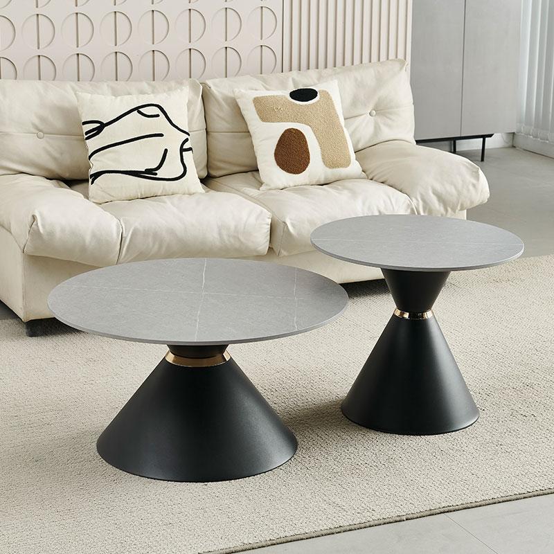 ΣΕΤ 2 ΤΡΑΠΕΖΑΚΙΑ ΣΑΛΟΝΙΟΥ Fylliana 6055 ΓΚΡΙ ΧΡΩΜΑ ΔΙΑΜΕΤΡΟΣ 80+60εκ