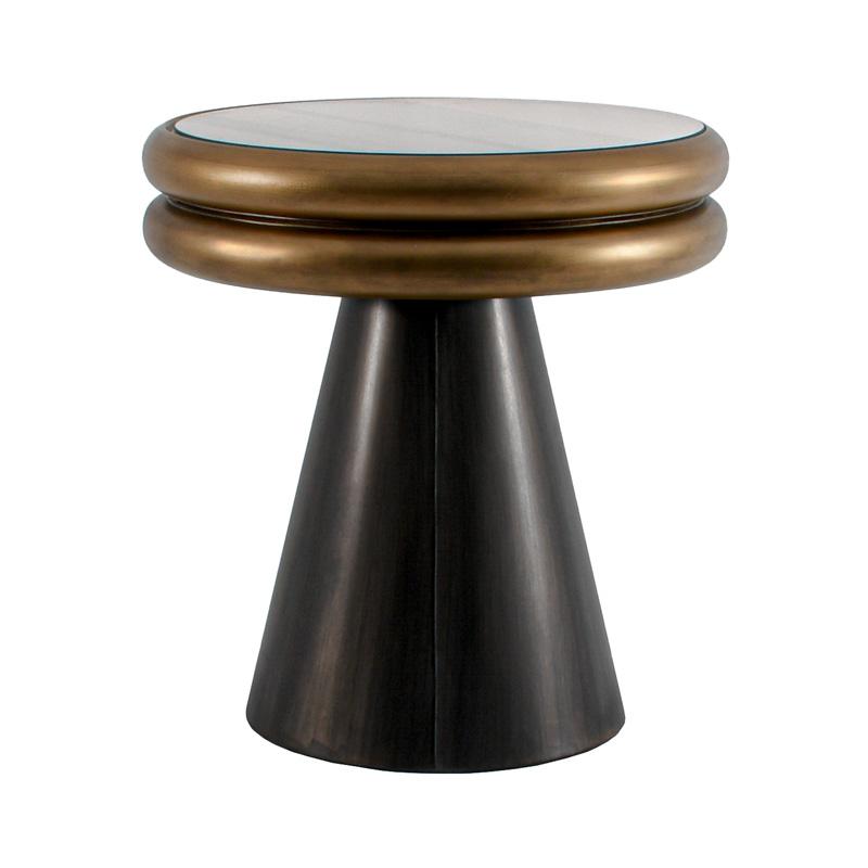 ΜΕΤΑΛΛΙΚΟ ΣΤΡΟΓΓΥΛΟ ΤΡΑΠΕΖΑΚΙ ΣΑΛΟΝΙΟΥ ΜΕ ΓΥΑΛΙ Fylliana FL0092 ΧΡΥΣΟ - ΜΑΥΡΟ 53x57εκ
