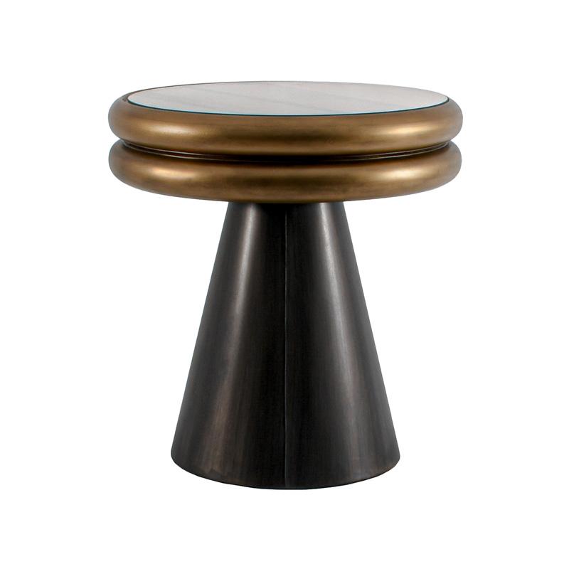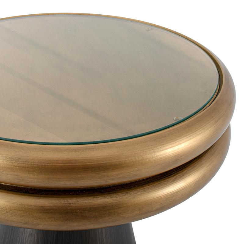 ΜΕΤΑΛΛΙΚΟ ΣΤΡΟΓΓΥΛΟ ΤΡΑΠΕΖΑΚΙ ΣΑΛΟΝΙΟΥ ΜΕ ΓΥΑΛΙ Fylliana FL0091 ΧΡΥΣΟ - ΜΑΥΡΟ 41x50εκ
