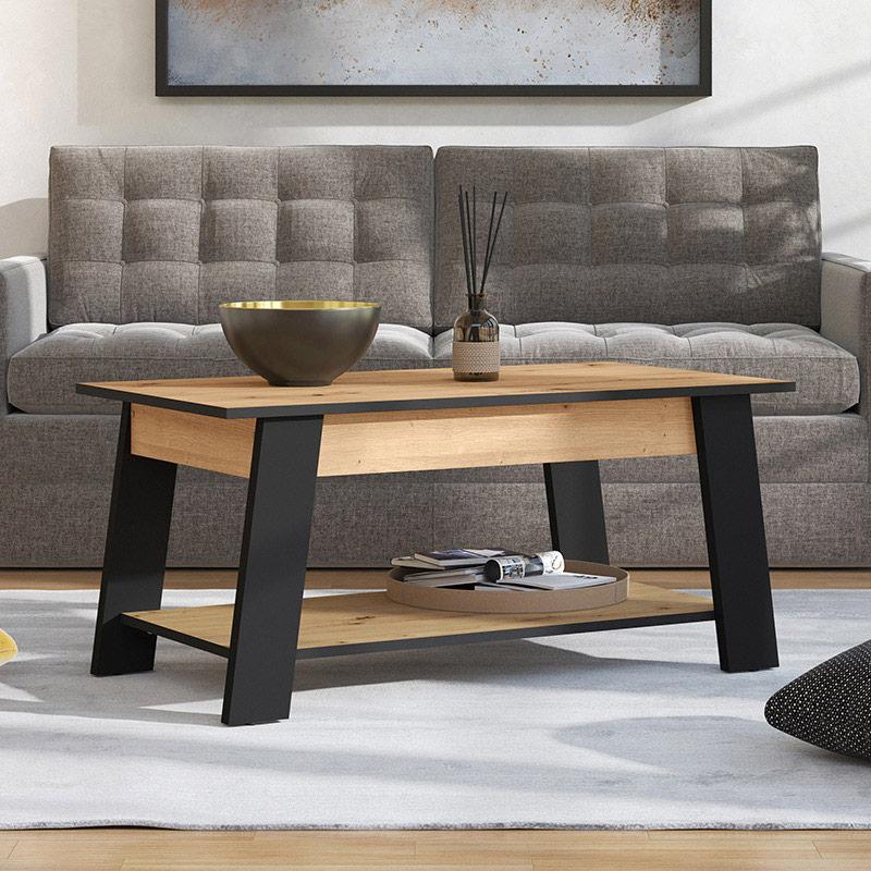 ΤΡΑΠΕΖΑΚΙ ΣΑΛΟΝΙΟΥ PIAVE ARTISAN OAK-ΜΑΥΡΟ ΜΑΤ 101x55x47εκ