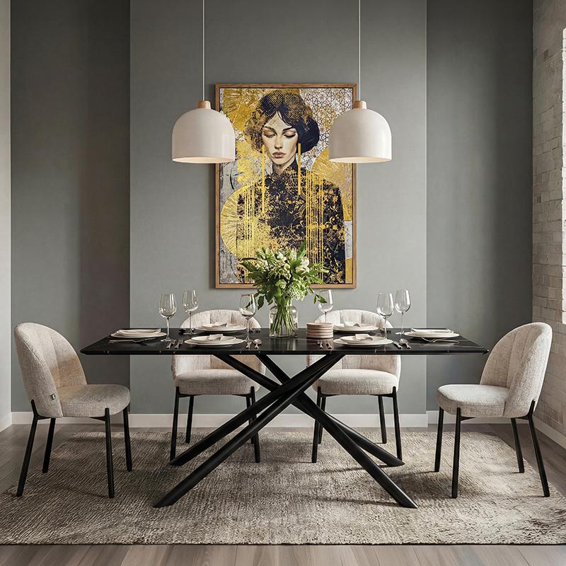 ΤΡΑΠΕΖΙ ΤΡΑΠΕΖΑΡΙΑΣ Fylliana FL1603 ΚΕΡΑΜΙΚΗ ΕΠΙΦΑΝΕΙΑ ΜΕ ΜΕΤΑΛΛΙΚΑ ΠΟΔΙΑ ΜΑΥΡΟ ΧΡΩΜΑ 160x80x76εκ