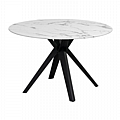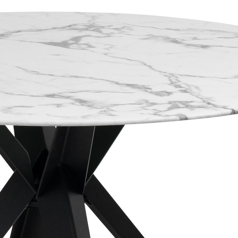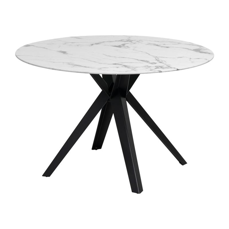 ΤΡΑΠΕΖΙ ΤΡΑΠΕΖΑΡΙΑΣ ΣΤΡΟΓΓΥΛΟ Fylliana FL102 MARBLE ΜΕ ΜΑΥΡΑ ΜΕΤΑΛΛΙΚΑ ΠΟΔΙΑ 120x75εκ