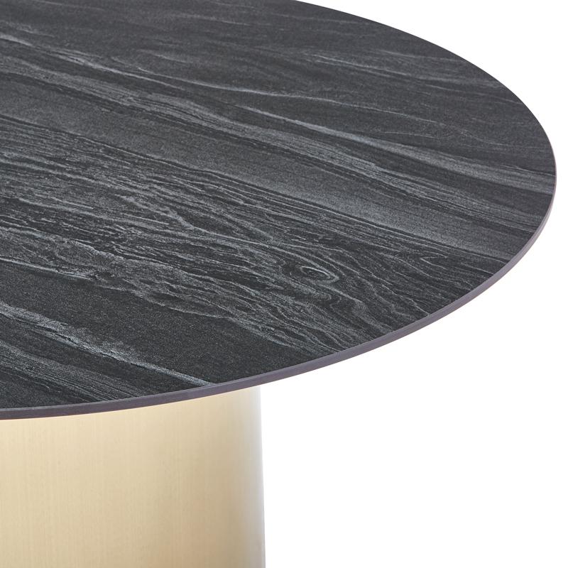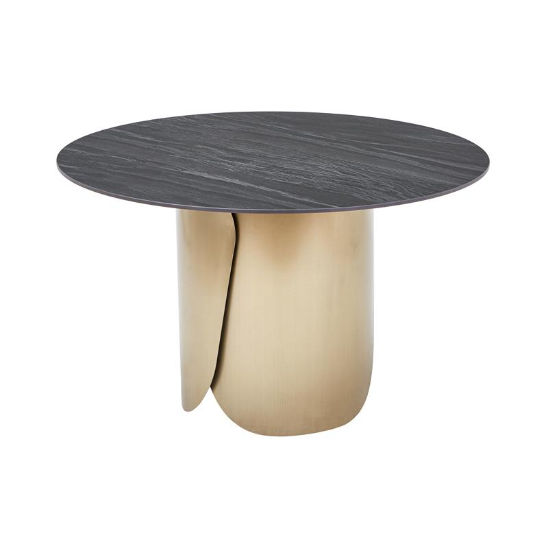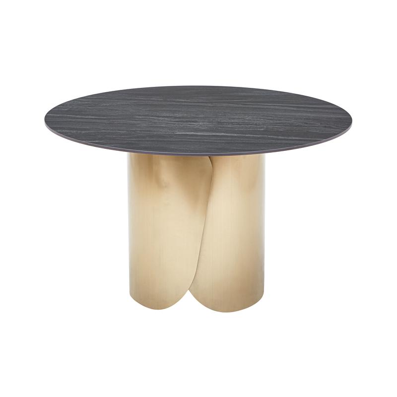 ΣΤΡΟΓΓΥΛΟ ΤΡΑΠΕΖΙ ΤΡΑΠΕΖΑΡΙΑΣ Fylliana FL0063 ΜΕ ΓΚΡΙ ΚΕΡΑΜΙΚΗ ΕΠΙΦΑΝΕΙΑ ΜΕ ΜΕΤΑΛΛΙΚΑ ΠΟΔΙΑ ΣΕ ΧΡΥΣΟ ΧΡΩΜΑ 120x75εκ
