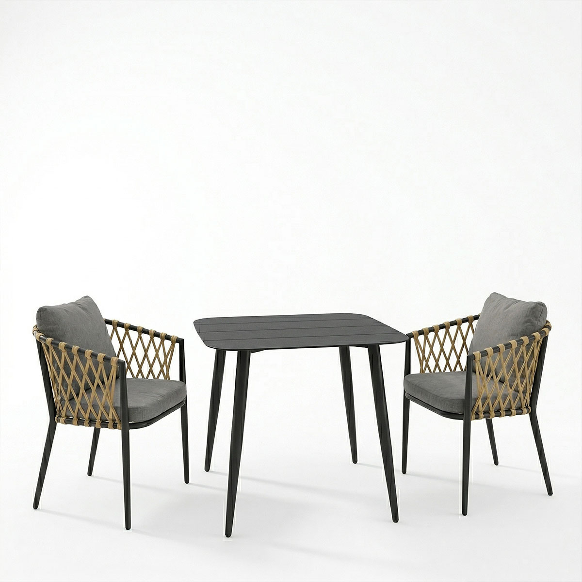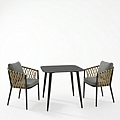 Τραπεζαρία Peluxe Vista pakoworld σετ 3τεμ ανθρακί αλουμίνιο με PE σχοινί σε φυσική απόχρωση και μαξιλάρια 80x80x72εκ