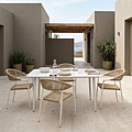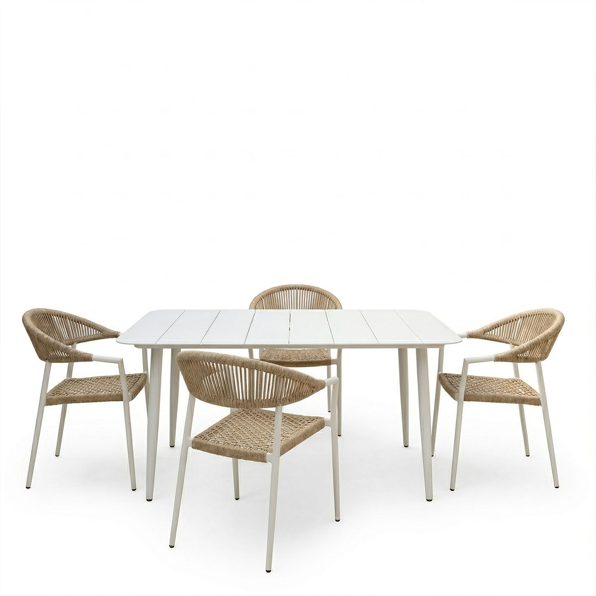 Τραπεζαρία Ammos Vista pakoworld σετ 5τεμ λευκό αλουμίνιο με PE σχοινί σε φυσική απόχρωση 150x80x72εκ