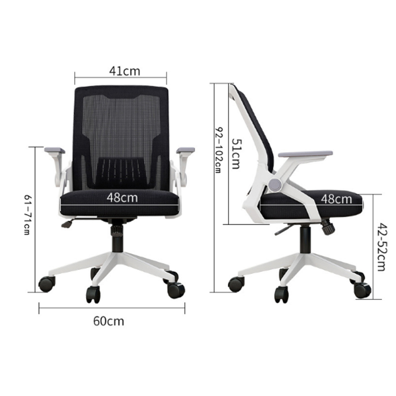 - Ευέλικτος Σχεδιασμός Εξοικονόμησης Χώρου: Τα υποβραχιόνια "Flip-Up" αναδιπλώνονται κατά 90°, επιτρέποντας την καρέκλα να σπρώχνεται πλήρως κάτω από οποιοδήποτε γραφείο. Αυτή η λειτουργία είναι ιδανική για compact γραφεία και γραφεία με περιορισμένο χώρο.