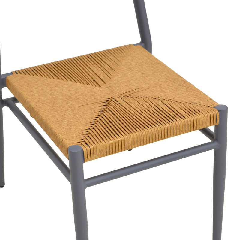 Καρέκλα Giardino pakoworld στοιβαζόμενη αλουμίνιο σε ανθρακί -pe rattan σε φυσική απόχρωση 45x56x82εκ