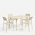 Ανανεώστε τον εξωτερικό σας χώρο με ένα σετ τραπεζαρίας που συνδυάζει την υψηλή αισθητική με την απόλυτη εργονομία. Το σετ περιλαμβάνει το ευρύχωρο τραπέζι Moraja και τέσσερις αναπαυτικές, στοιβαζόμενες πολυθρόνες Deraby, όλα σε μια γλυκιά κρεμ απόχρωση που προσδίδει φως και αίσθηση καθαρότητας σε κάθε κήπο, βεράντα ή αυλή.