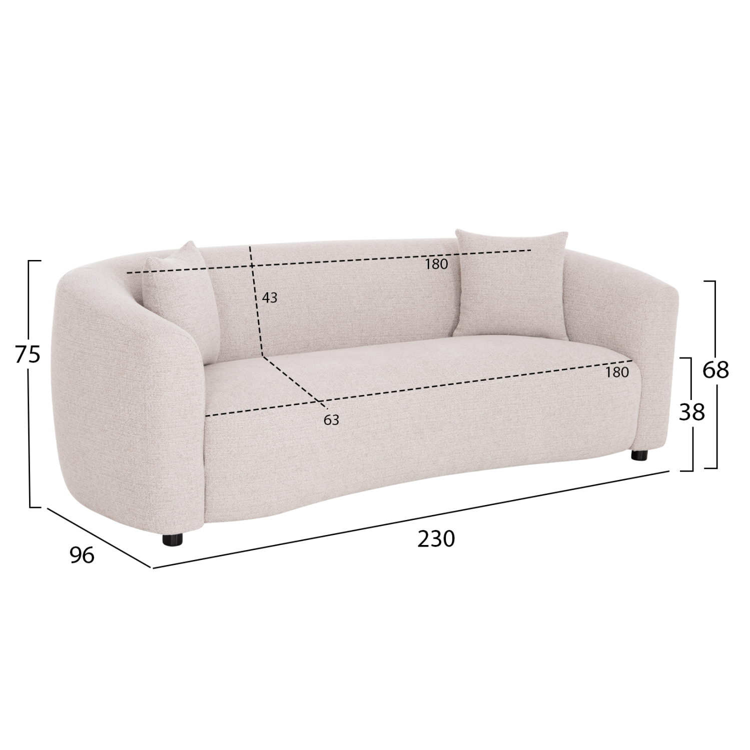 ΚΑΝΑΠΕΣ 3-ΘΕΣΙΟΣ FB93321.02 ΑΝΟΙΧΤΟ ΜΠΕΖ ΥΦΑΣΜΑ 230x96x75Υεκ.