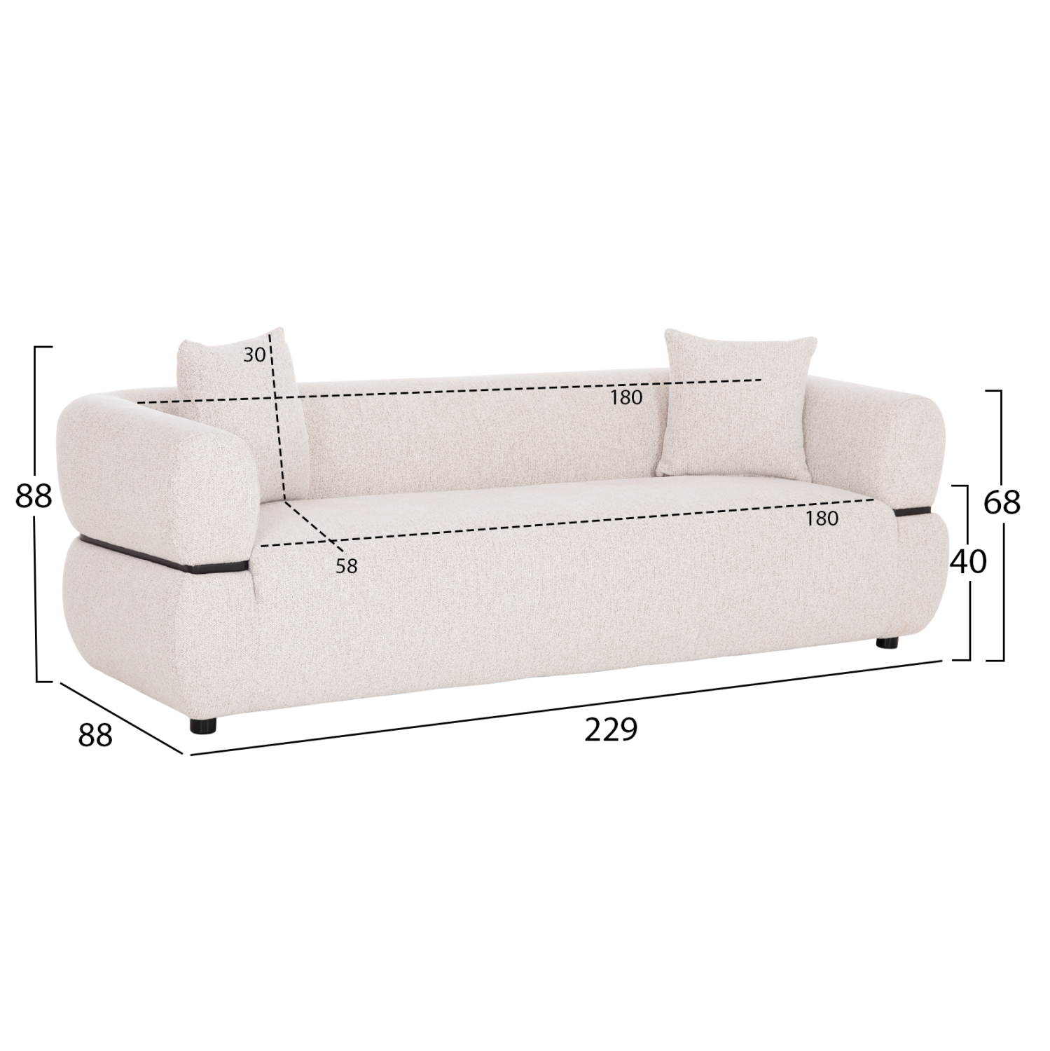 Καναπές 3-θέσιος FB93327.02 – Minimal Design με Ανοιχτό Μπεζ ανάγλυφο Ύφασμα