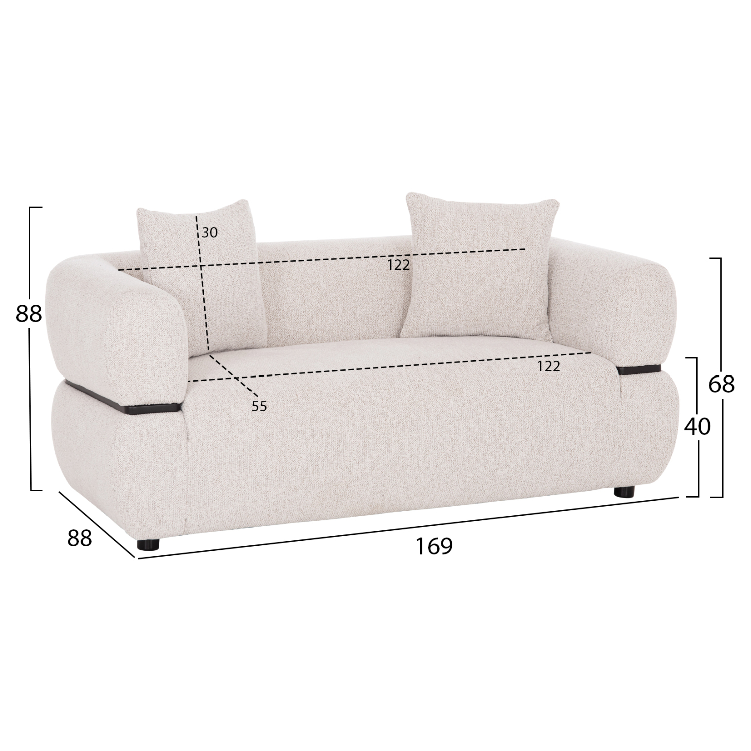 Καναπές 2-θέσιος FB93328.02 – Minimal Design με Ανοιχτό Μπεζ ανάγλυφο Ύφασμα