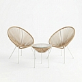 Σαλόνι Εξωτερικού Χώρου Acapulco pakoworld Σετ 3τεμ μέταλλο λευκό με pe rattan σε φυσική απόχρωση Φ50x52εκ