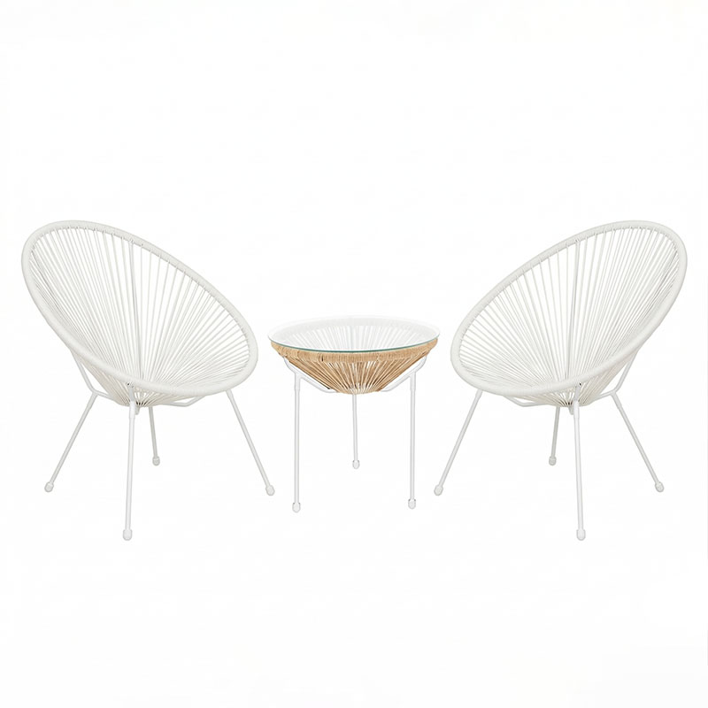 Σαλόνι Εξωτερικού Χώρου Acapulco pakoworld Σετ 3τεμ λευκό μέταλλο με pe rattan σε φυσική απόχρωση Φ50x52εκ