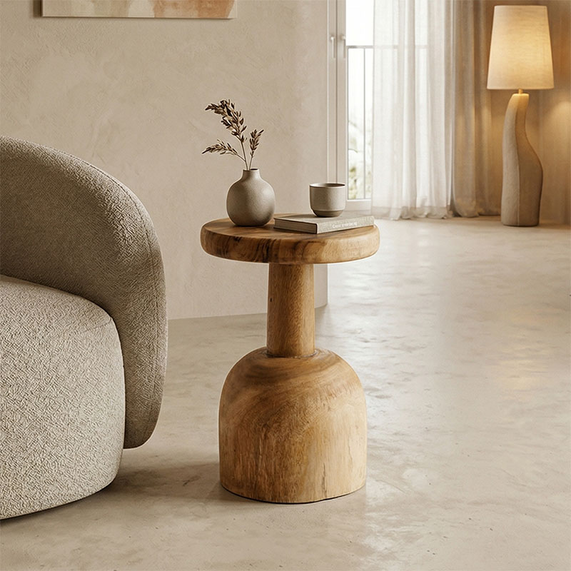Βοηθητικό τραπέζι Queno pakoworld suar ξύλο σε φυσική απόχρωση Φ30x45εκ