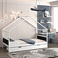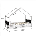 Το στρώμα τοποθετείται σε τάβλες κατασκευασμένες από ξυλεία κόντρα πλακέ. Ολόκληρο το κρεβάτι έχει σχήμα σπιτιού και μάλιστα αρκετά ψηλό, που θα δώσει μια ευχάριστη, «ζεστή», και παιχνιδιάρικη όψη σε κάθε παιδικό δωμάτιο.