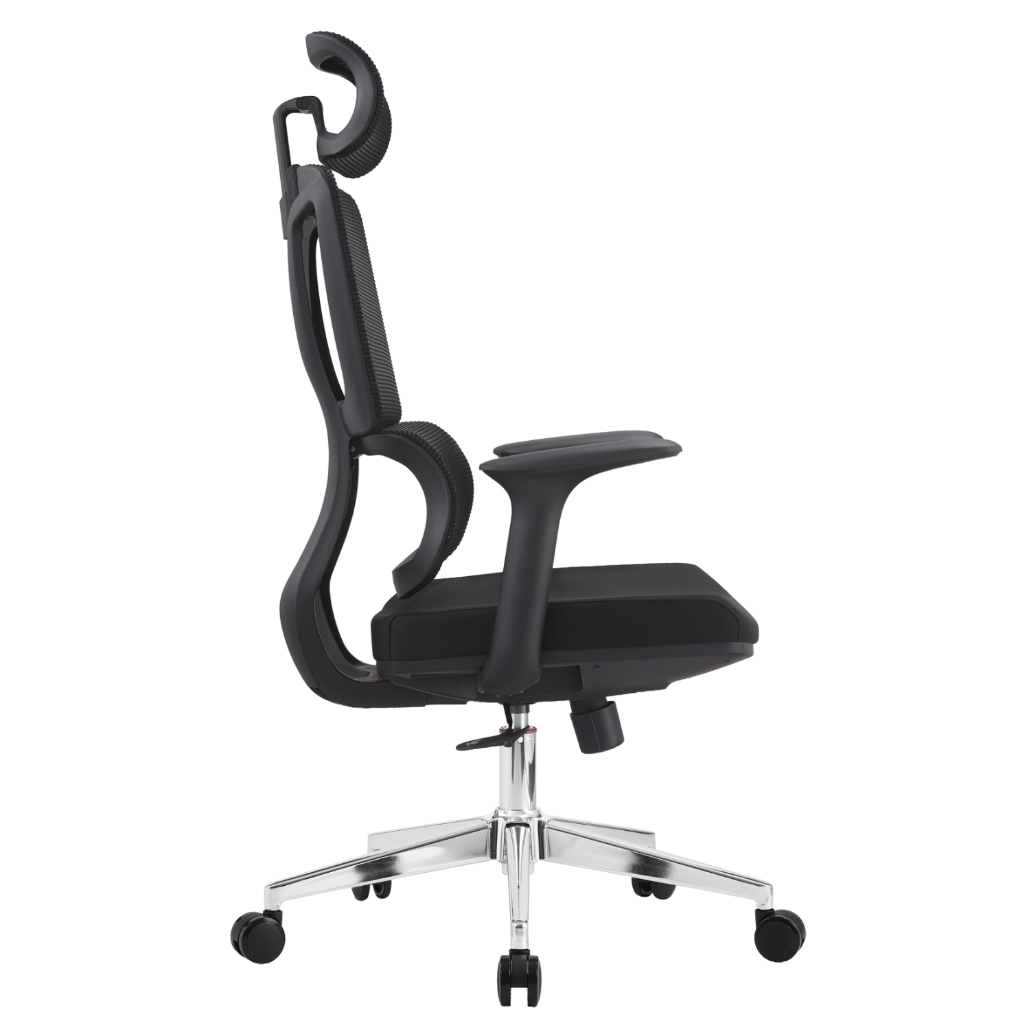 3.Premium Executive Aesthetics: Η επιβλητική παρουσία της με το ψηλό προσκέφαλο και τη χρωμιωμένη βάση αναβαθμίζει άμεσα το κύρος του γραφείου σας.