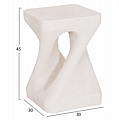 Το σκαμπό είναι κατασκευασμένο από polyresin (πολυρητίνη), ένα σύγχρονο συνθετικό υλικό υψηλής αντοχής που χρησιμοποιείται ευρέως σε premium διακοσμητικά αντικείμενα και έπιπλα design. Η πολυρητίνη προσφέρει σταθερότητα, ανθεκτικότητα στη χρήση και δυνατότητα δημιουργίας σύνθετων σχημάτων με ιδιαίτερη αισθητική. Η σαγρέ υφή στην επιφάνεια ενισχύει την αίσθηση φυσικού υλικού και χαρίζει στο αντικείμενο μια σύγχρονη, γλυπτική παρουσία.