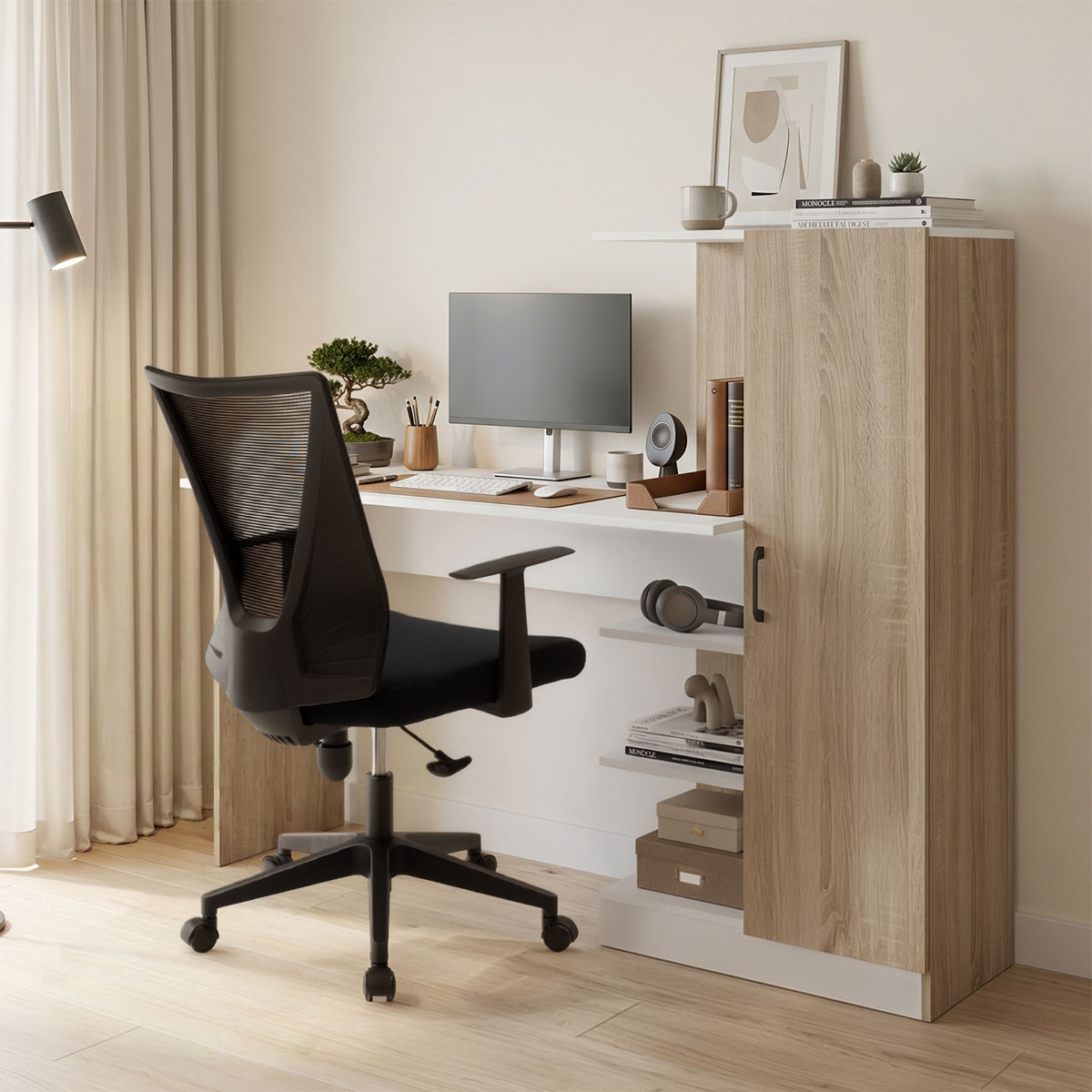 Γραφείο με βιβλιοθήκη και ντουλάπι Ofisio pakoworld sonoma-λευκό 152.3x40x120εκ