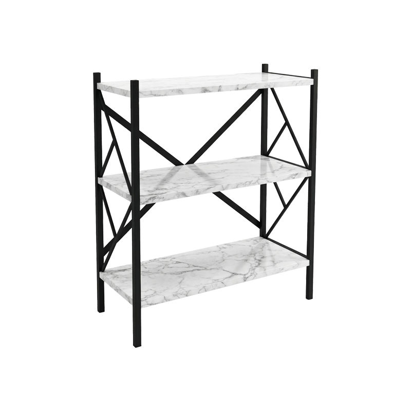 Ραφιέρα επιδαπέδια Althea pakoworld λευκό μαρμάρου με μαύρο μέταλλο 60x30x90εκ