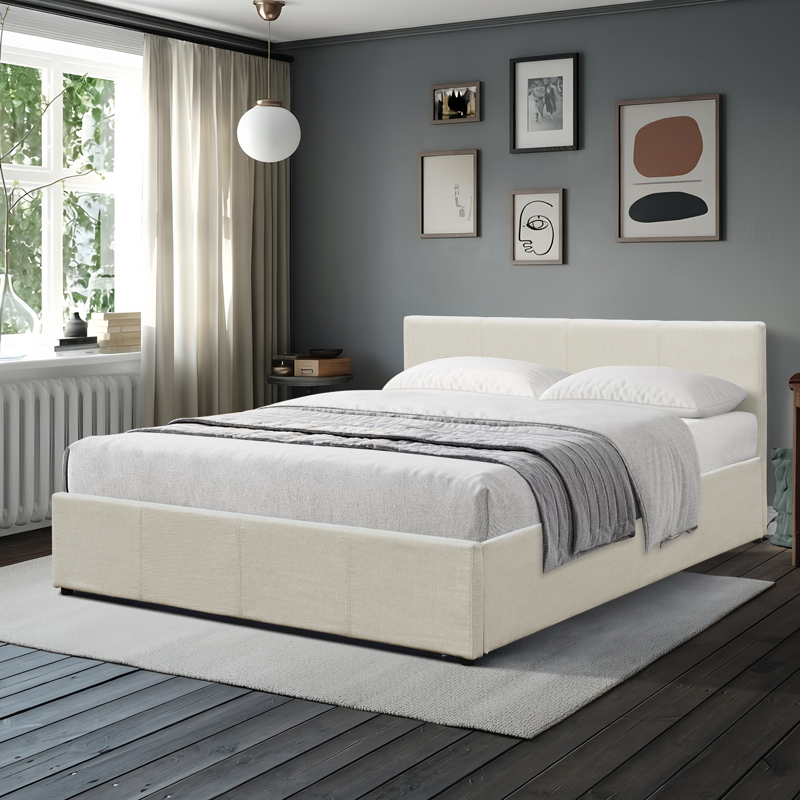 Κρεβάτι Dellia pakoworld με αποθηκευτικό χώρο ύφασμα κρεμ 150x200εκ