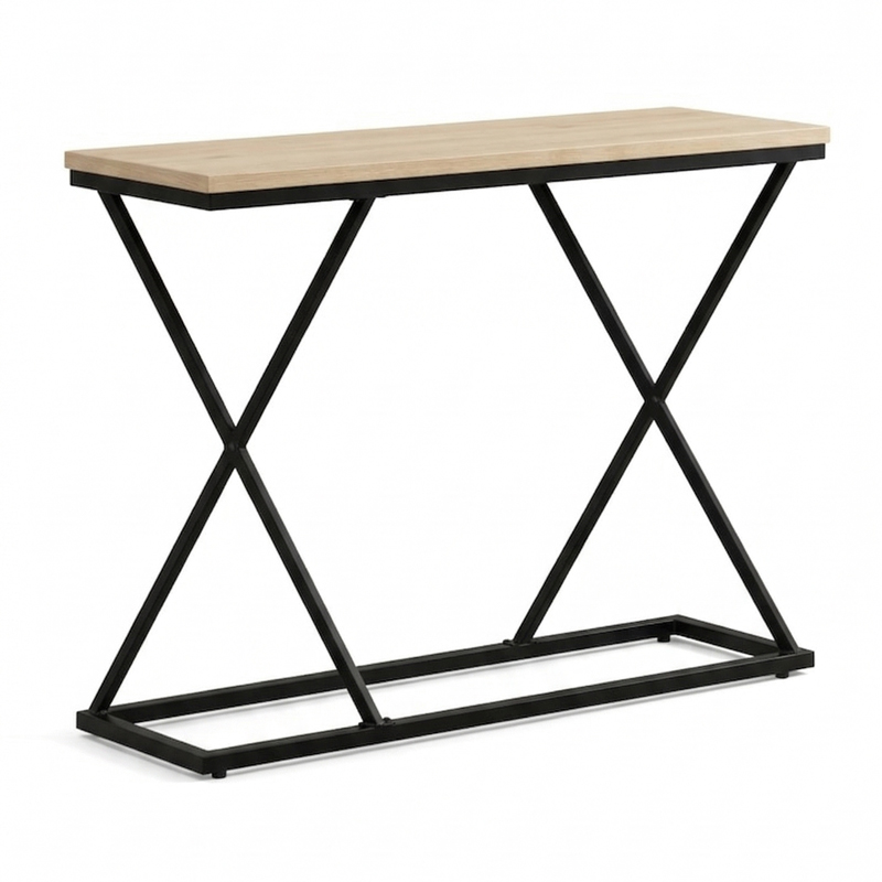 Κονσόλα Glimmer pakoworld σε φυσικό απόχρωση με μαύρο μέταλλο 100x30x80εκ