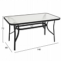Το τραπέζι FB95106.03 εξωτερικού χώρου έχει ΜΑΥΡΟ μεταλλικό σκελετό και γυάλινη θολή επιφάνεια! Πρόκειται για πολύ δημοφιλές τραπέζι που δεν λείπει σχεδόν από κανέναν μπαλκόνι ή κήπο. Είναι ορθογώνιο με γωνίες στρογγυλεμένες ενώ το γυαλί της επιφάνειας είναι ενισχυμένο.