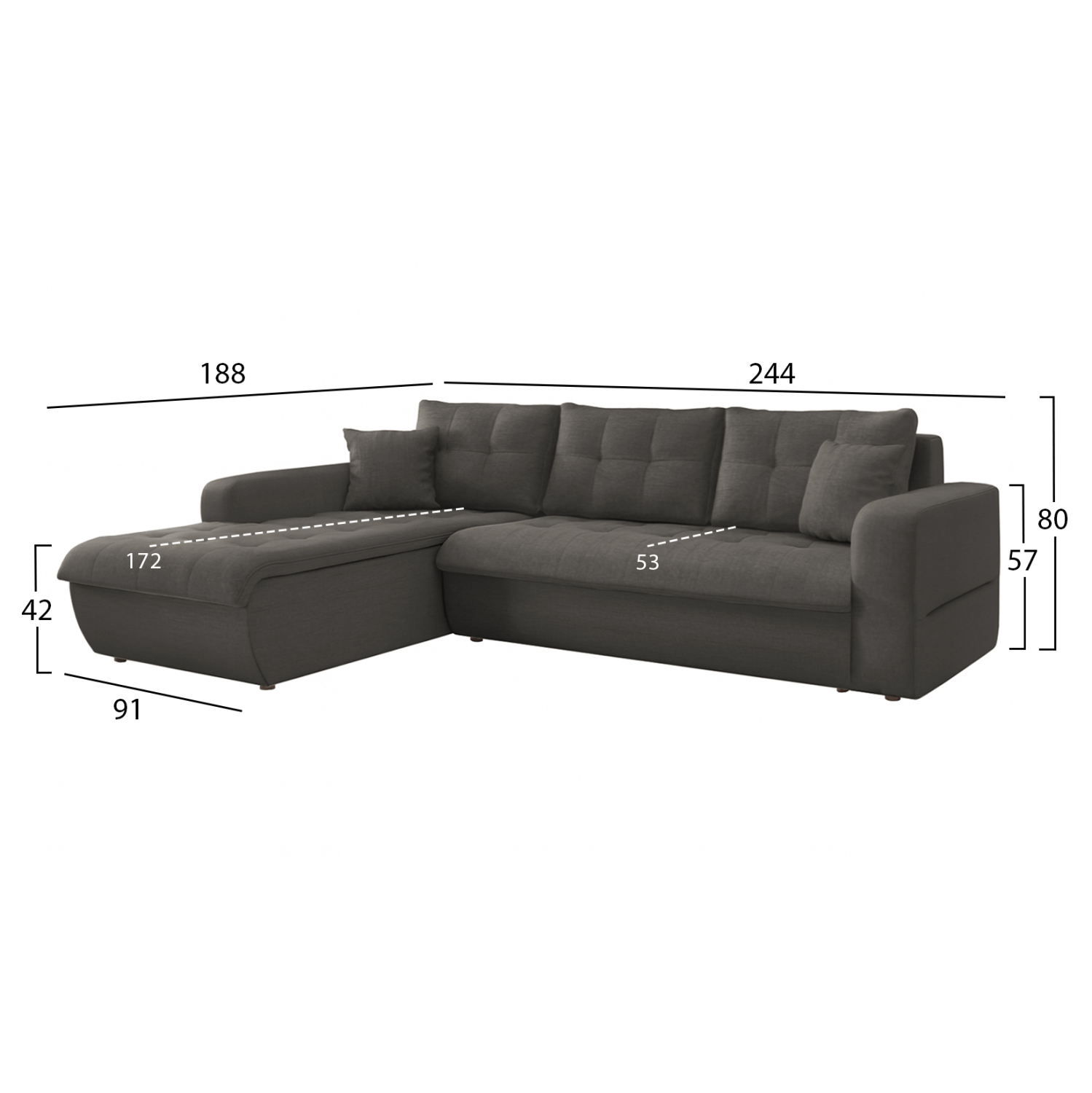 ΚΑΝΑΠΕΣ ΚΡΕΒΑΤΙ ΑΡΙΣΤΕΡΗ ΓΩΝΙΑ FB93338.01L ΓΚΡΙ ΥΦΑΣΜΑ 244x188x80Υεκ