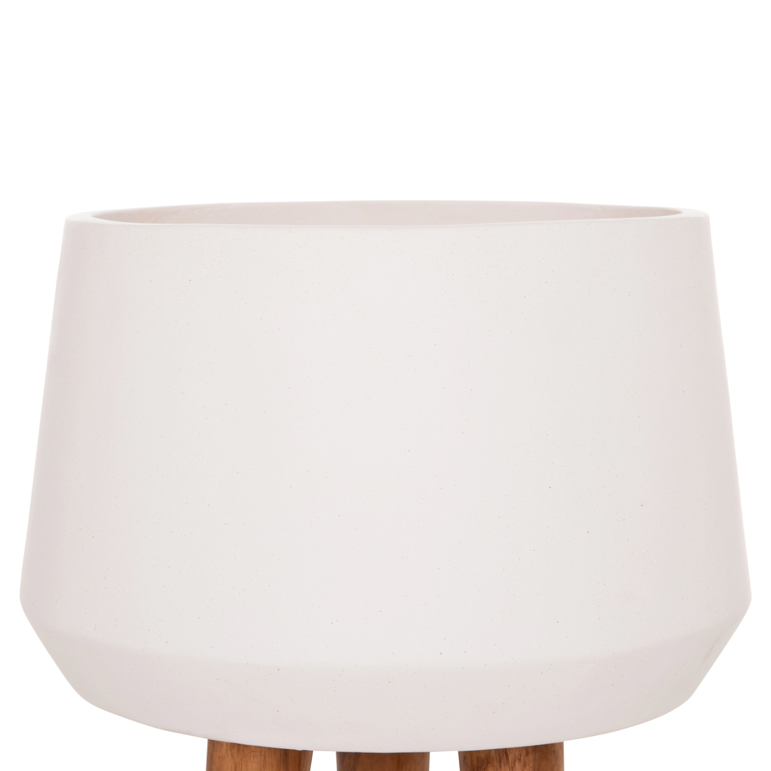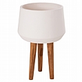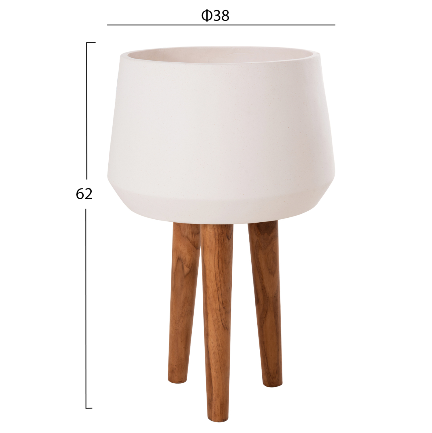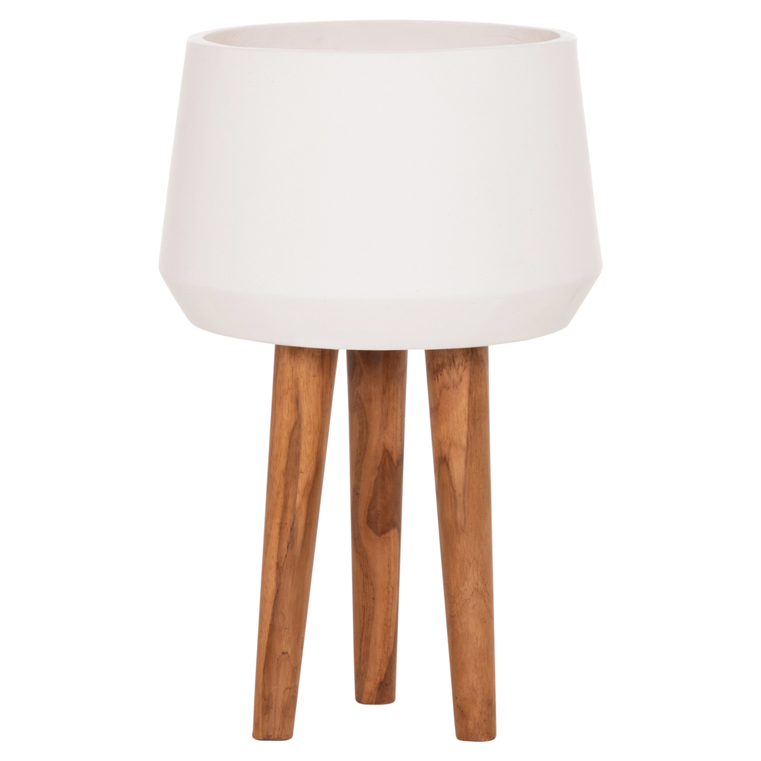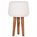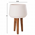 Η φαρδιά γλάστρα εσωτερικού χώρου (κασπό) FB94680.02L είναι κατασκευασμένη από Fiber Cement σε ΛΕΥΚΟ χρώμα. Το ιδιαίτερο χαρακτηριστικό της είναι ότι συνοδεύεται και τοποθετείται σε μια ψηλή σχετικά τρίποδη βάση από ξύλο teak. Κατά την χρήση της συνιστάται η τοποθέτηση εσωτερικού δοχείου για την σωστή διατήρηση της γλάστρας.