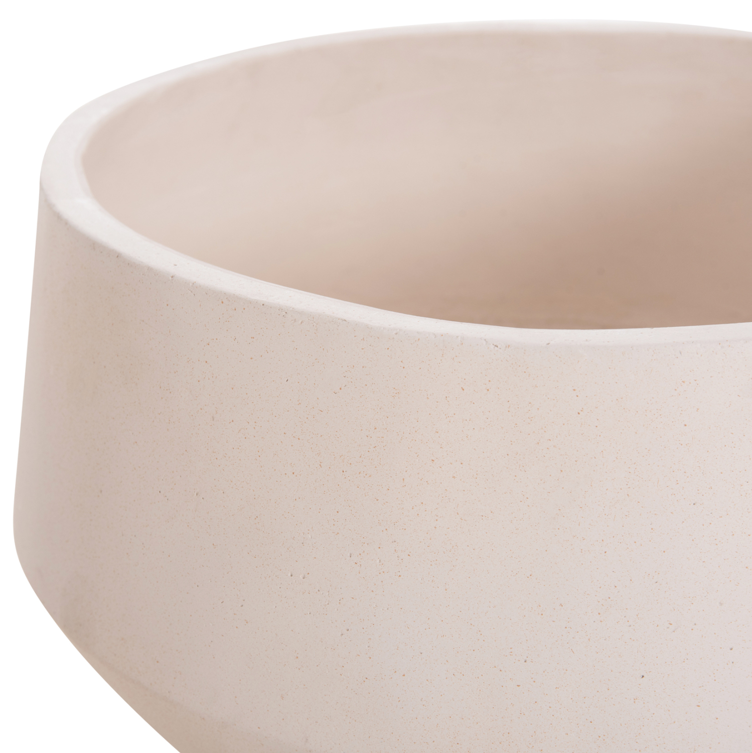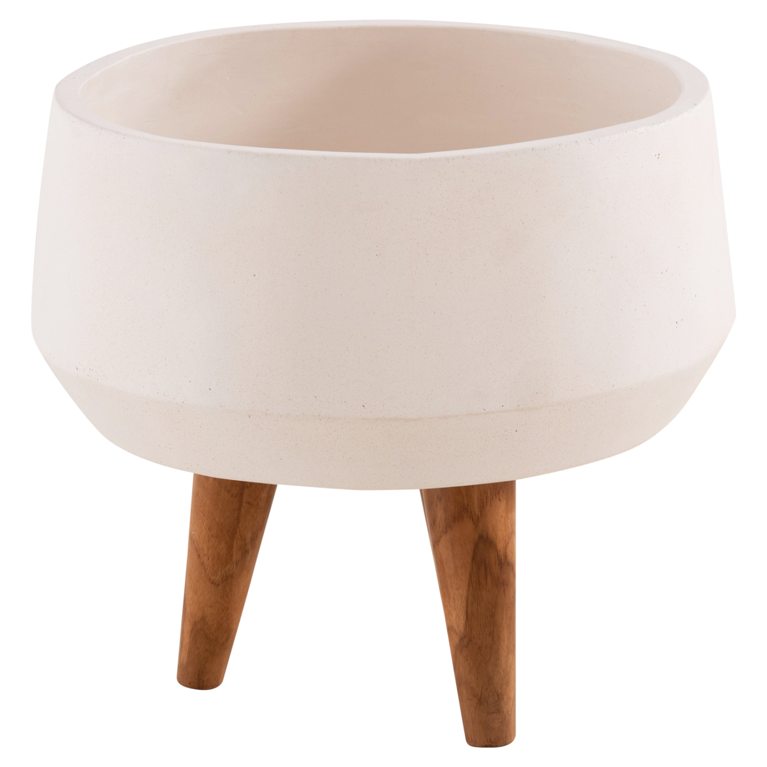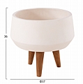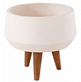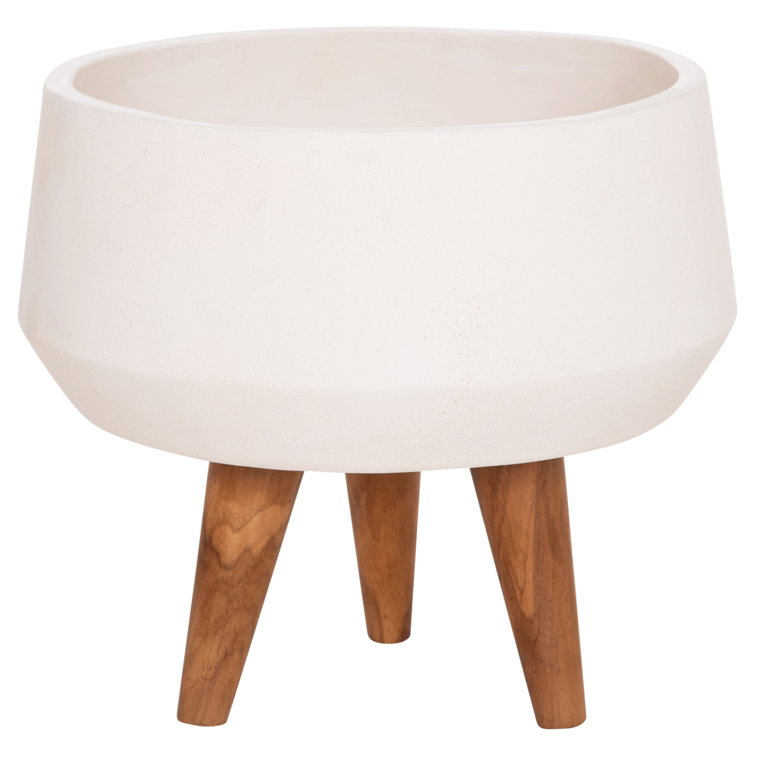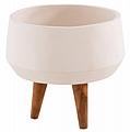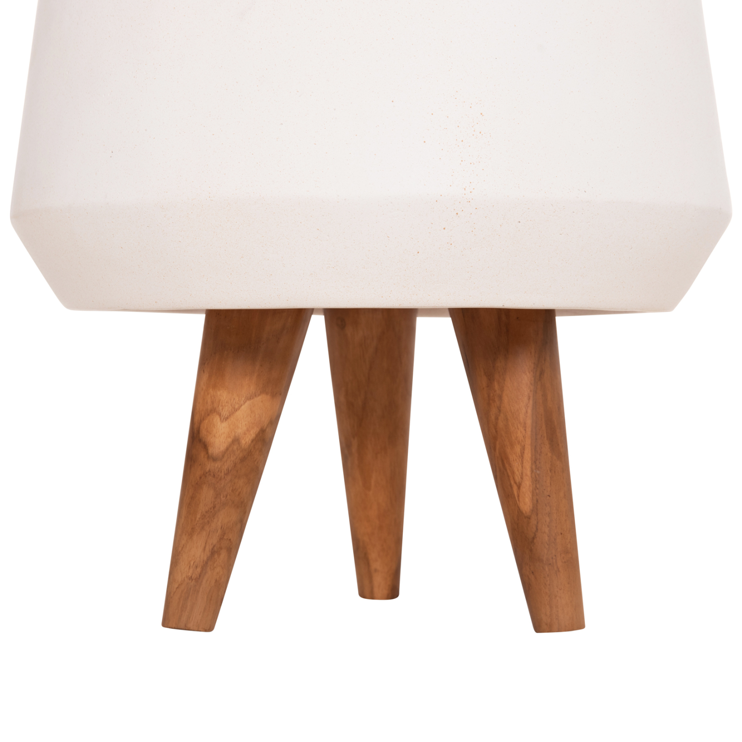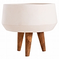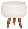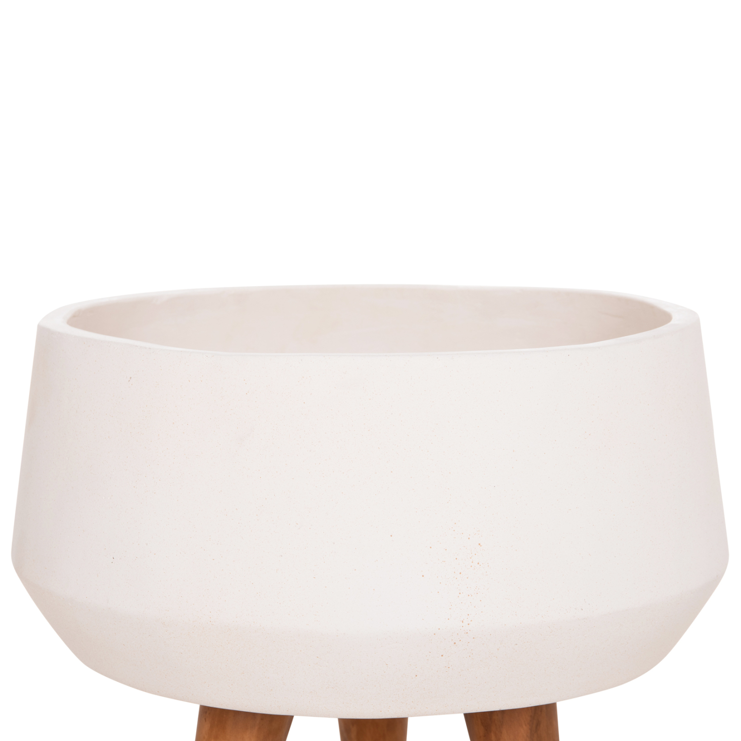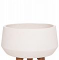 Η φαρδιά και ρηχή γλάστρα εσωτερικού χώρου (κασπό) FB94680.02S είναι κατασκευασμένη από Fiber Cement σε ΛΕΥΚΟ χρώμα. Το ιδιαίτερο χαρακτηριστικό της είναι ότι συνοδεύεται και τοποθετείται σε μια ψηλή σχετικά τρίποδη βάση από ξύλο teak. Κατά την χρήση της συνιστάται η τοποθέτηση εσωτερικού δοχείου για την σωστή διατήρηση της γλάστρας.