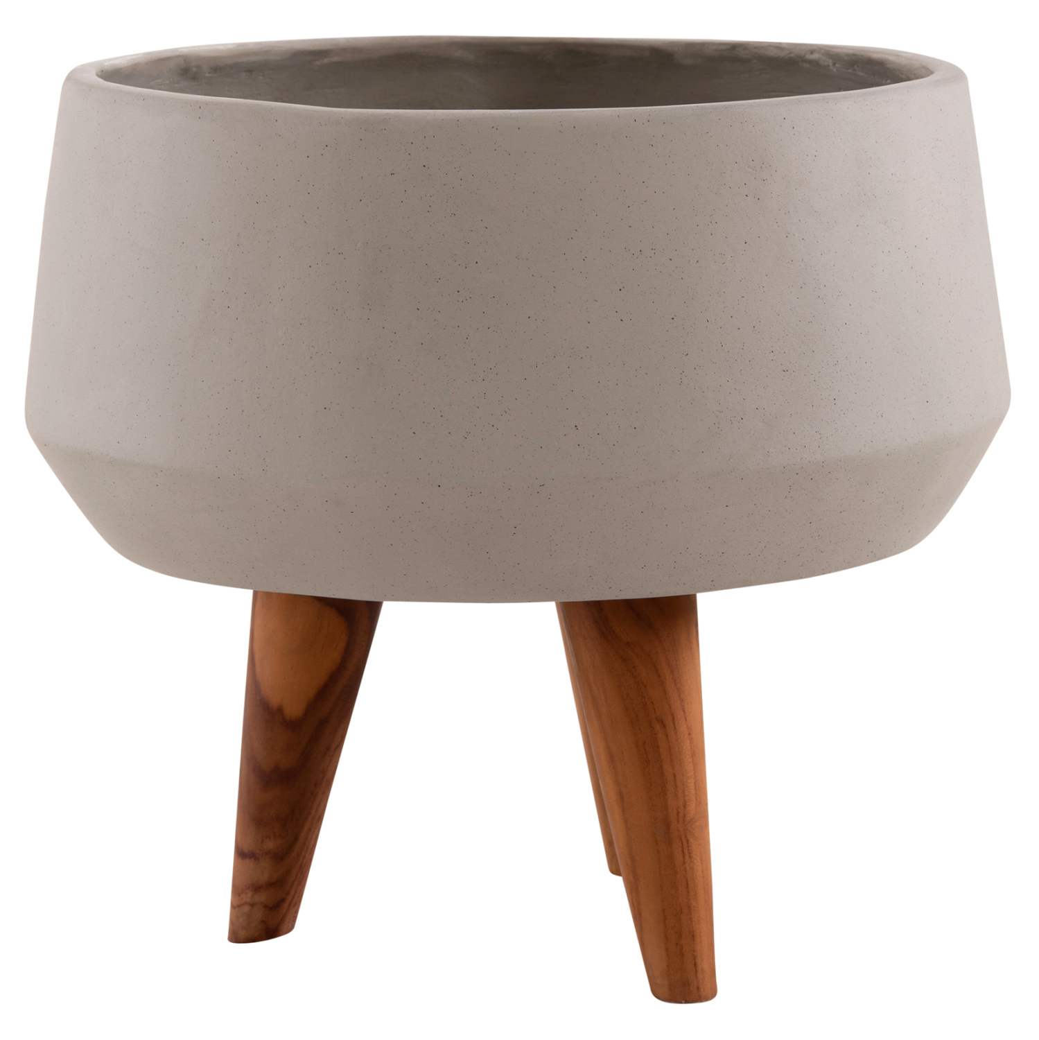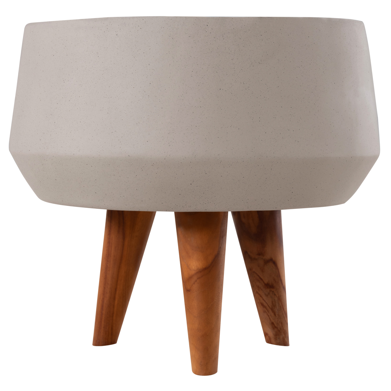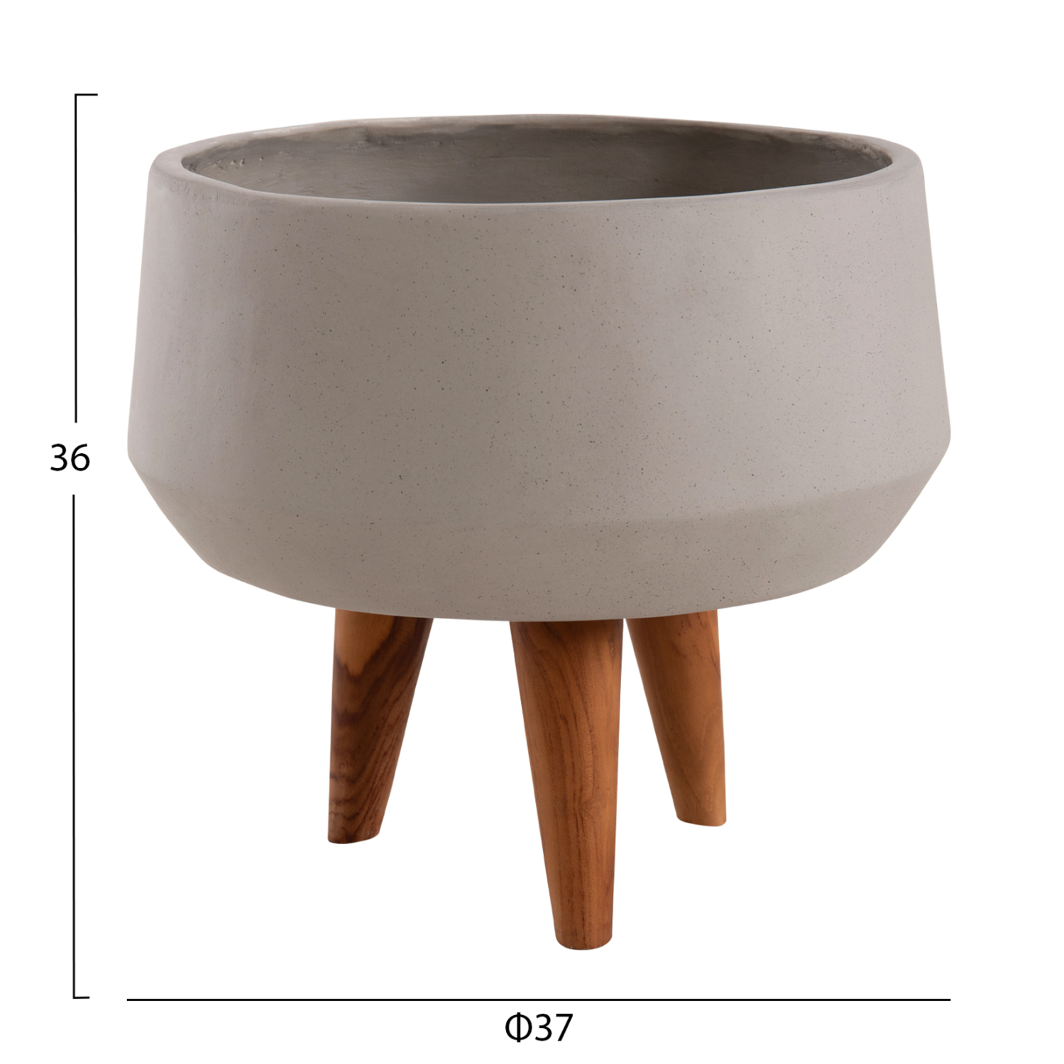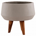 Η φαρδιά και ρηχή γλάστρα εσωτερικού χώρου (κασπό) FB94680.03S είναι κατασκευασμένη από Fiber Cement σε ΓΚΡΙ χρώμα. Το ιδιαίτερο χαρακτηριστικό της είναι ότι συνοδεύεται και τοποθετείται σε μια ψηλή σχετικά τρίποδη βάση από ξύλο teak. Κατά την χρήση της συνιστάται η τοποθέτηση εσωτερικού δοχείου για την σωστή διατήρηση της γλάστρας.