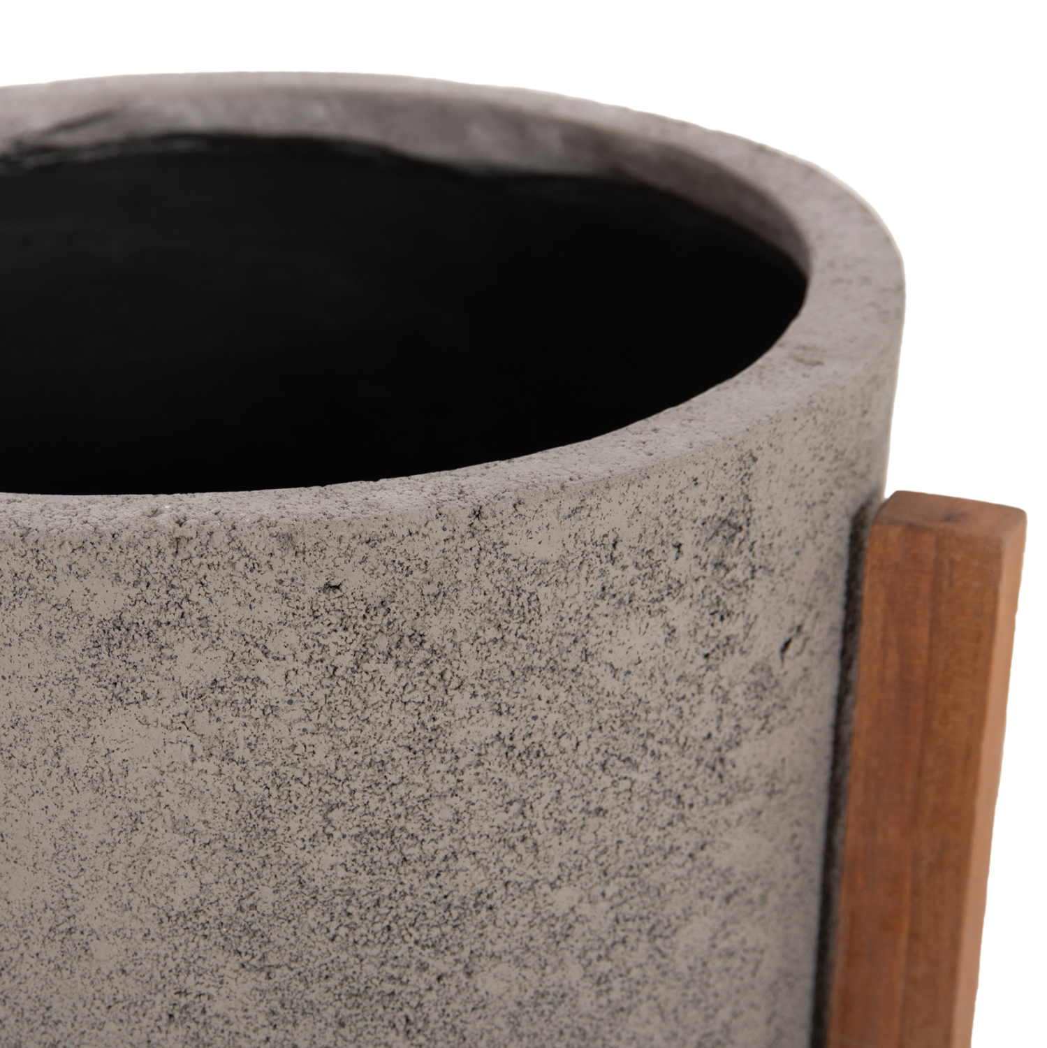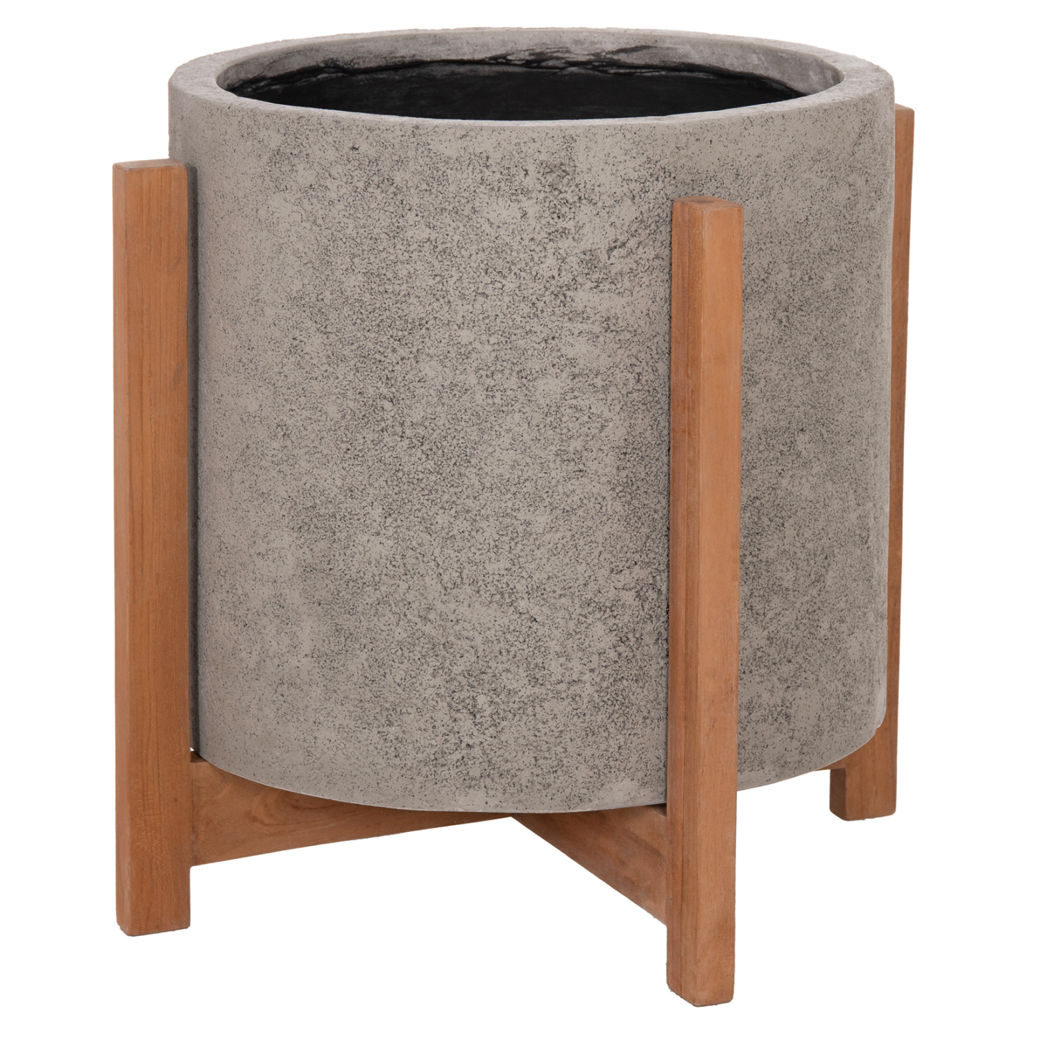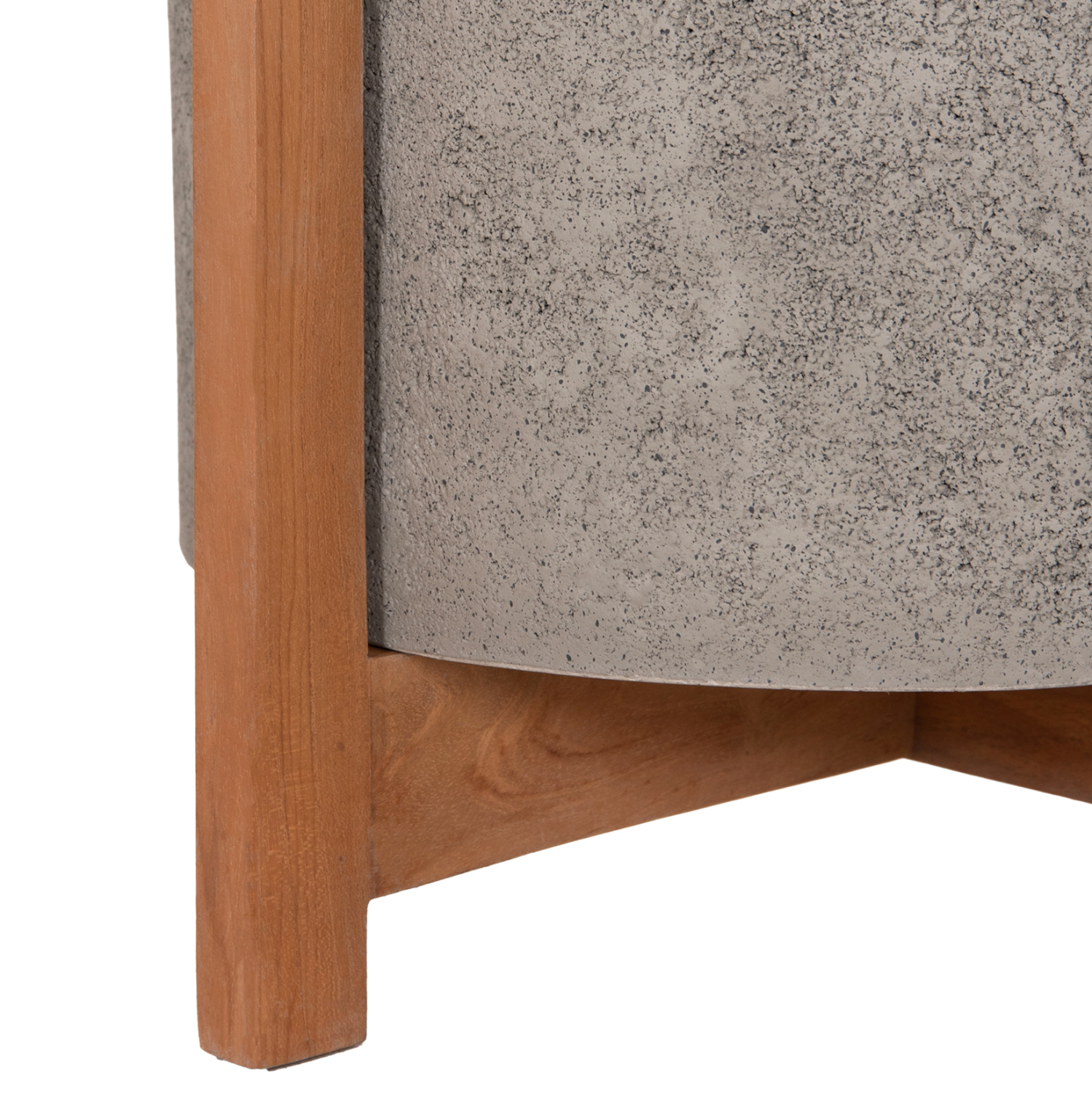 Η γλάστρα κασπό FB94682.03M συνδυάζει μοντέρνα αισθητική με φυσικά υλικά, δημιουργώντας ένα διακοσμητικό στοιχείο που αναβαθμίζει κάθε εσωτερικό χώρο. Το ΓΚΡΙ σώμα από fiber cement προσφέρει minimal κομψότητα, ενώ η βάση από ξύλο teak δημιουργεί μια όμορφη αντίθεση που προσθέτει ζεστασιά και φυσικό χαρακτήρα. Η γλάστρα εφαρμόζει μέσα στη βάση, δημιουργώντας ένα αρμονικό σύνολο που ταιριάζει ιδανικά σε σύγχρονα σπίτια, επαγγελματικούς χώρους ή χώρους φιλοξενίας.