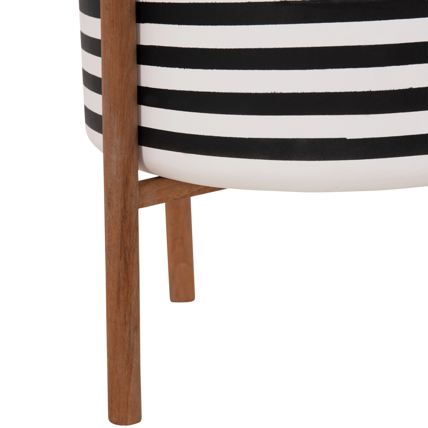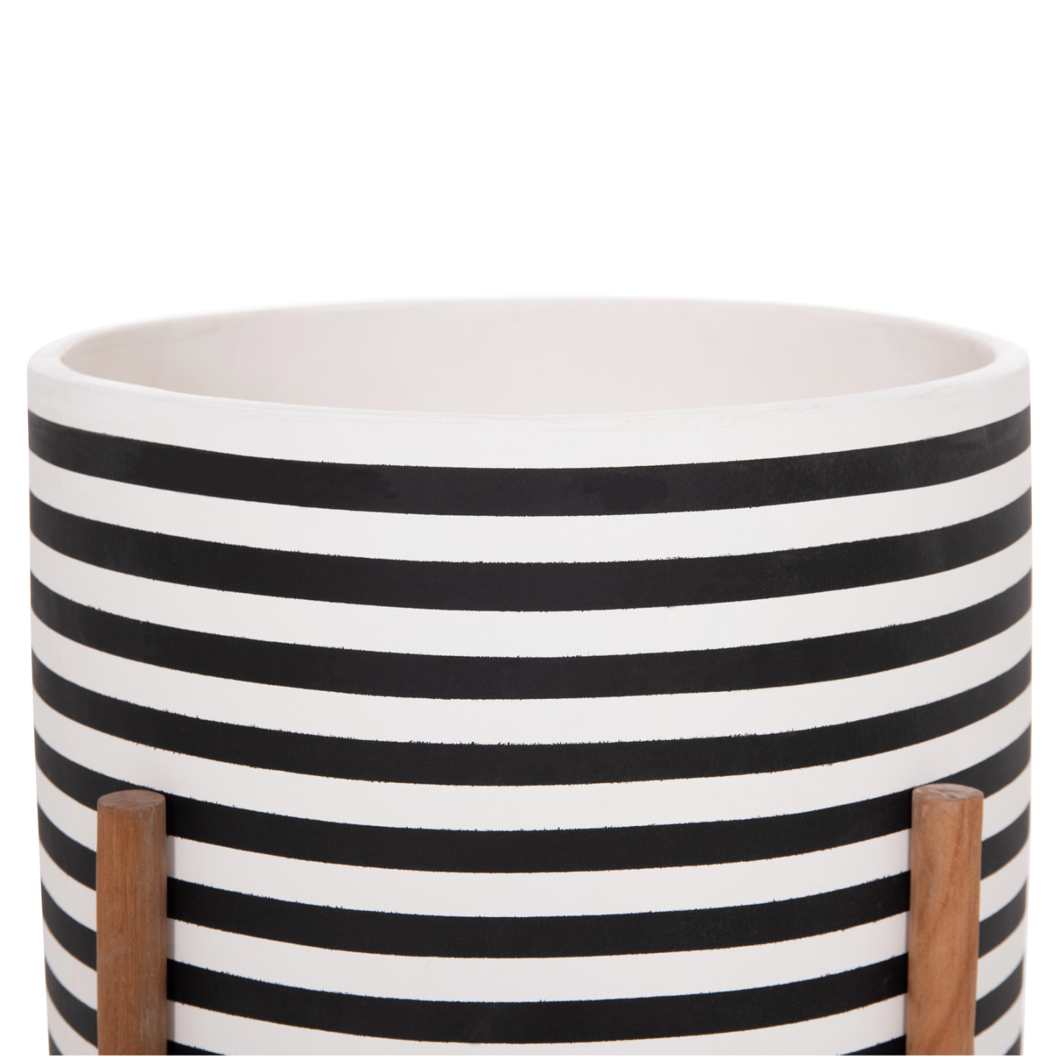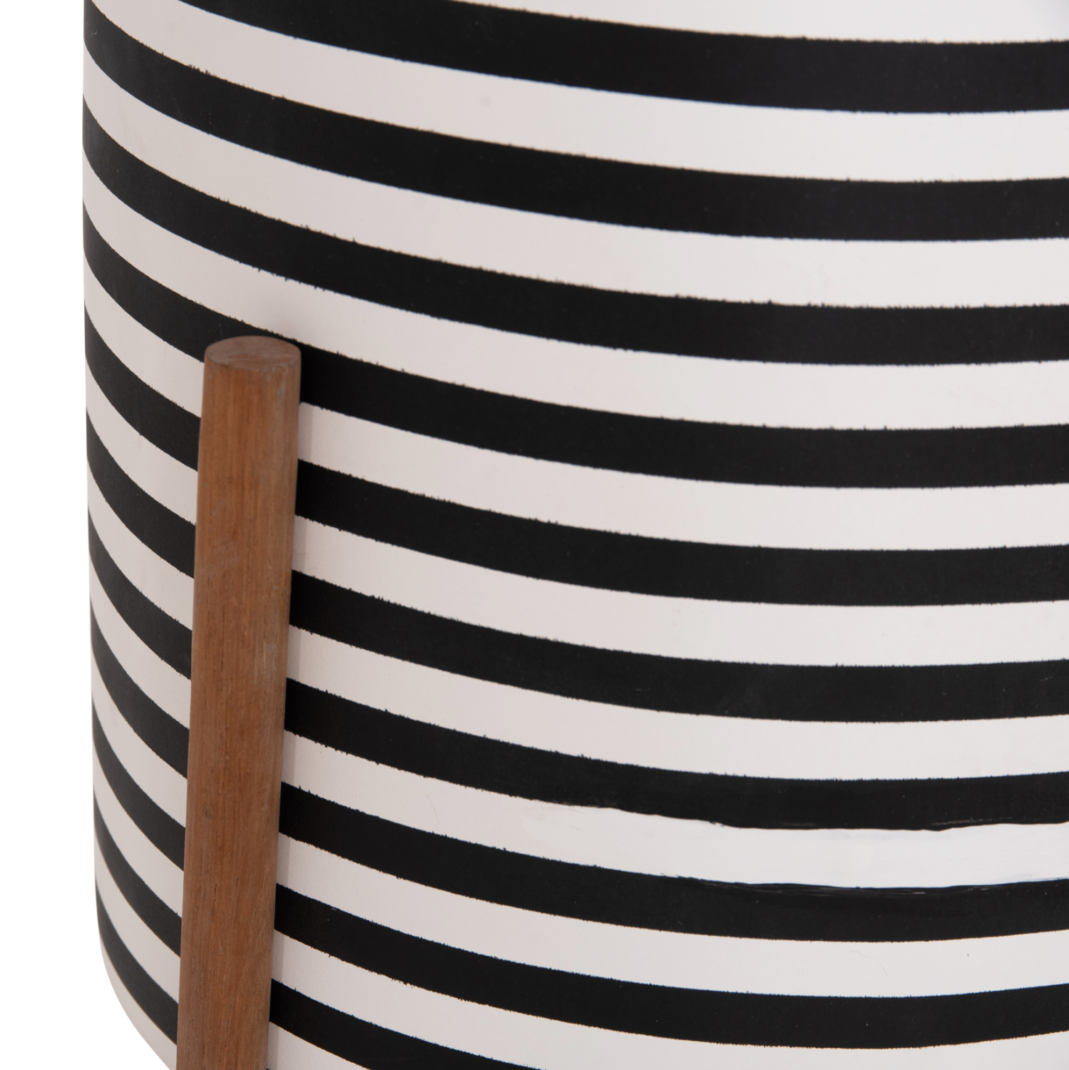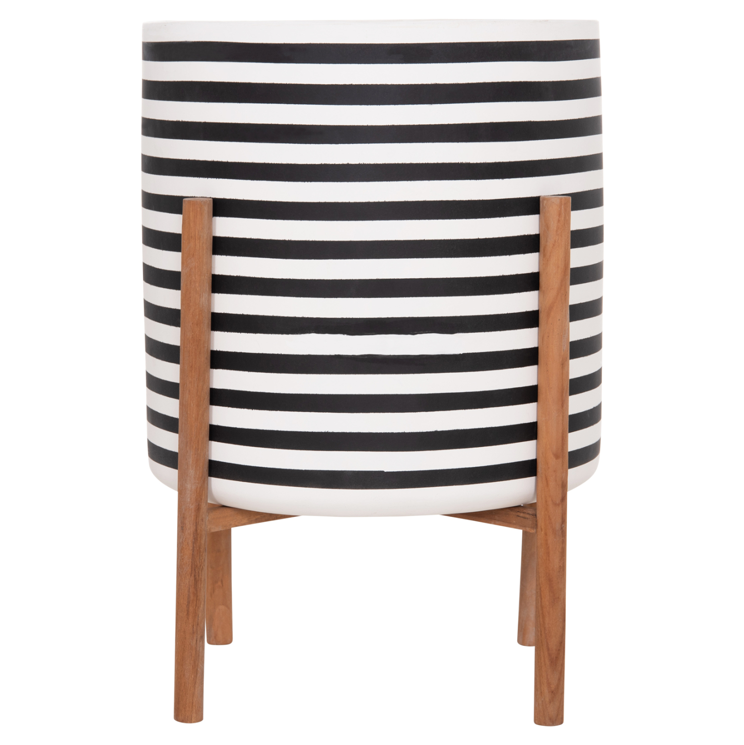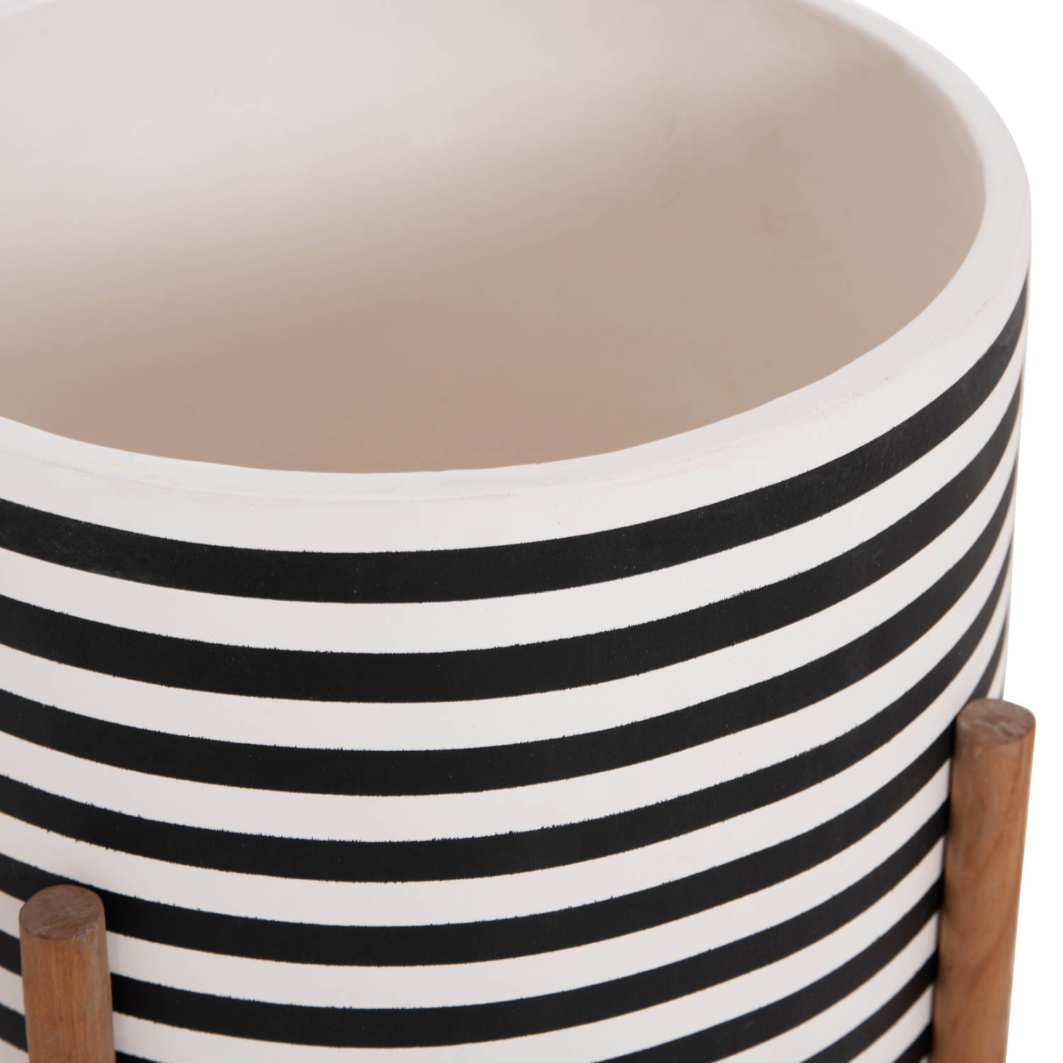 Η γλάστρα εσωτερικού χώρου (κασπό) FB94683L είναι κατασκευασμένη από Fiber Cement σε ΛΕΥΚΟ και ΜΑΥΡΟ χρώμα σε ρίγες. Το ιδιαίτερο χαρακτηριστικό της είναι ότι συνοδεύεται και τοποθετείται σε μια χιαστί βάση από ξύλο teak. Συνιστάται η τοποθέτηση εσωτερικού δοχείου εάν πρόκειται να την χρησιμοποιήσετε με νερό!