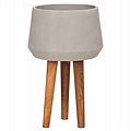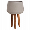 Η φαρδιά γλάστρα εσωτερικού χώρου (κασπό) FB94680.03L είναι κατασκευασμένη από Fiber Cement σε ΓΚΡΙ χρώμα. Το ιδιαίτερο χαρακτηριστικό της είναι ότι συνοδεύεται και τοποθετείται σε μια ψηλή σχετικά τρίποδη βάση από ξύλο teak. Κατά την χρήση της συνιστάται η τοποθέτηση εσωτερικού δοχείου για την σωστή διατήρηση της γλάστρας.