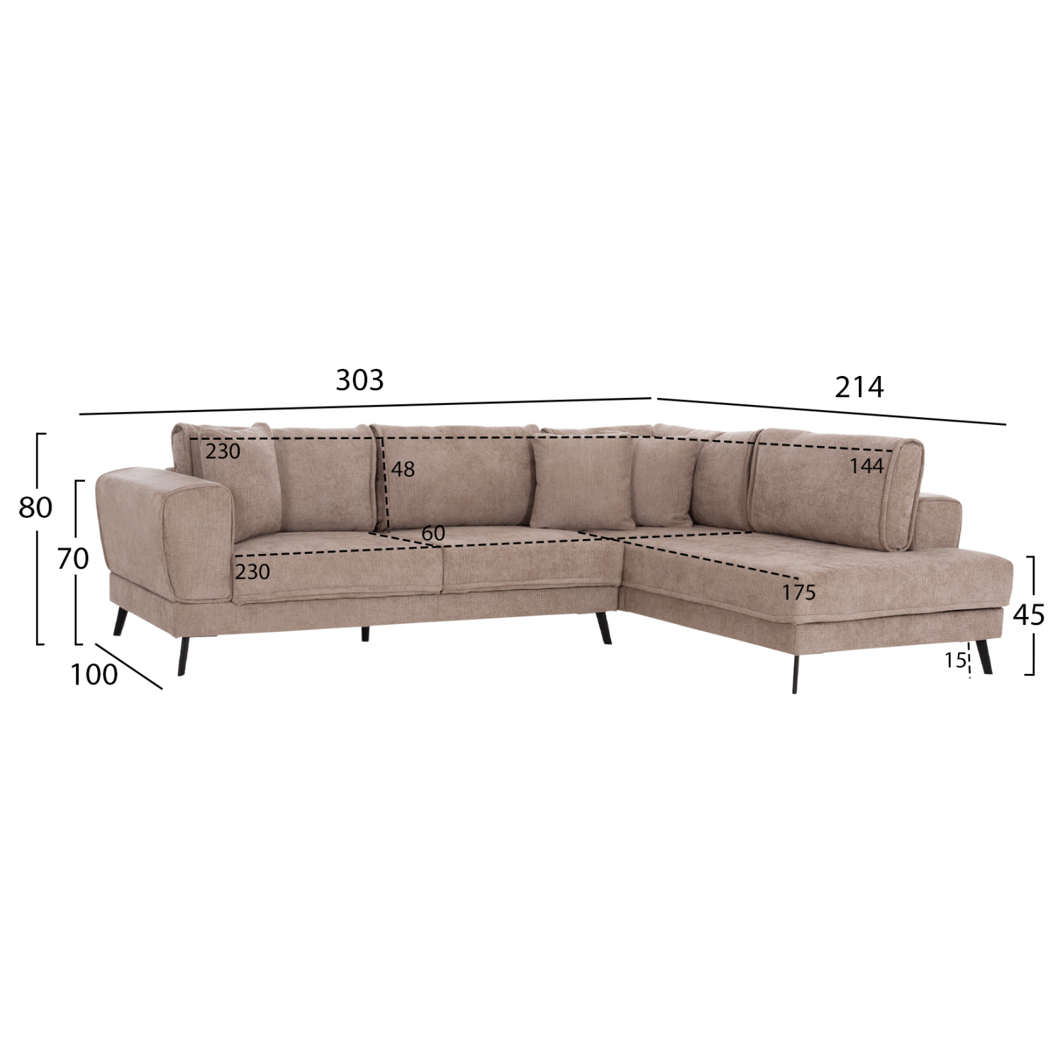 ΚΑΝΑΠΕΣ ΚΡΕΒΑΤΙ ΔΕΞΙΑ ΓΩΝΙΑ ZENORA FB93337.03R ΜΠΕΖ ΥΦΑΣΜΑ 303x214x80Υεκ