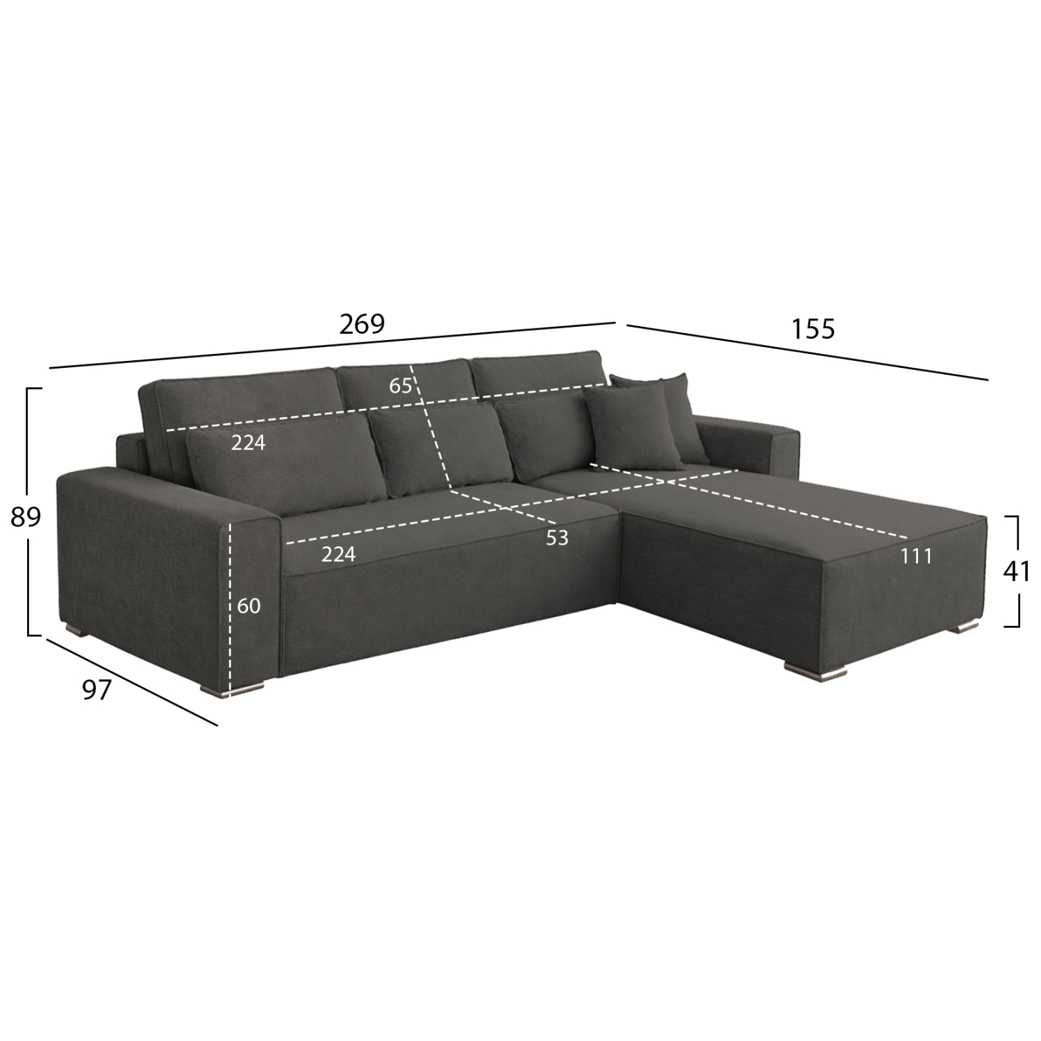 •Βάθος καθίσματος γωνίας (μέχρι τα μαξιλάρια): 111 εκ.