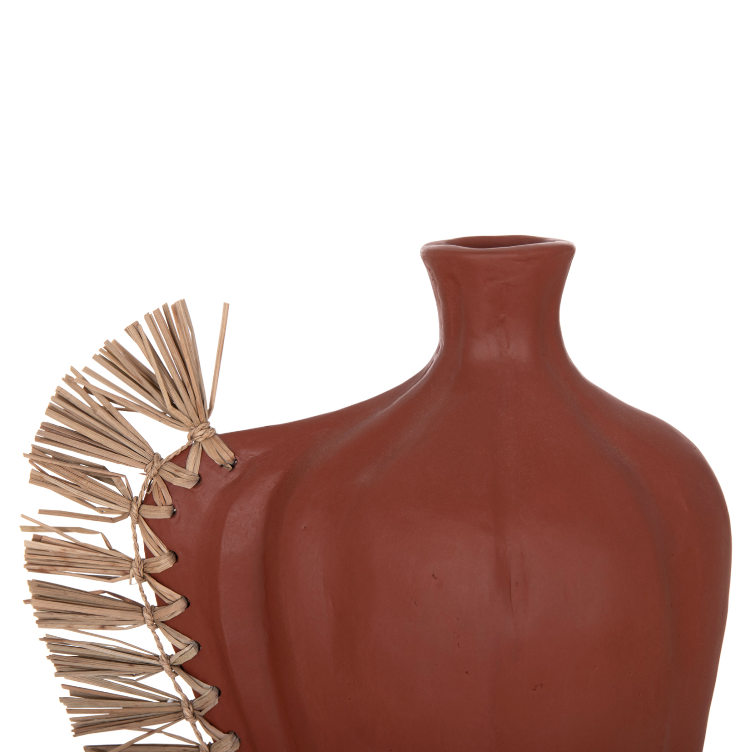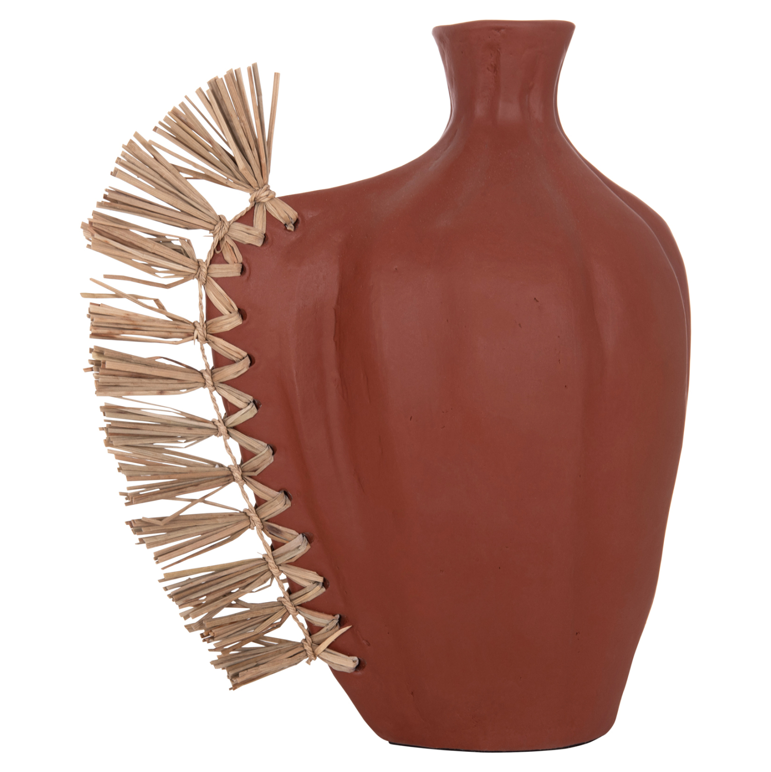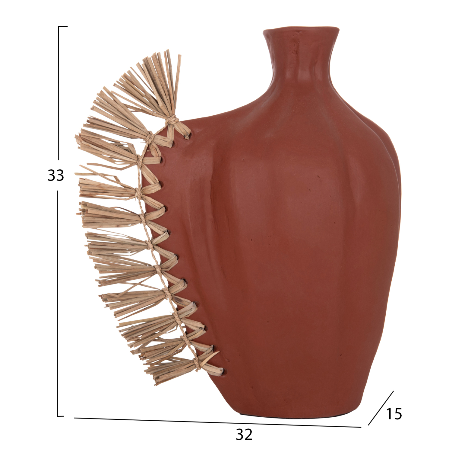 Το επιτραπέζιο χειροποίητο διακοσμητικό βάζο FB94689.08 διαθέτει στενό στόμιο και είναι ένα πολύ ιδιαίτερο διακοσμητικό στοιχείο για κάθε χώρο. Ακολουθώντας την τελευταία τάση στην εσωτερική διακόσμηση, είναι κατασκευασμένο εξολοκλήρου από σχεδόν σαγρέ τερακότα στο ΦΥΣΙΚΟ της χρώμα, ενώ στην μία πλευρά διαθέτει διακόσμηση με αποξηραμένο grass.