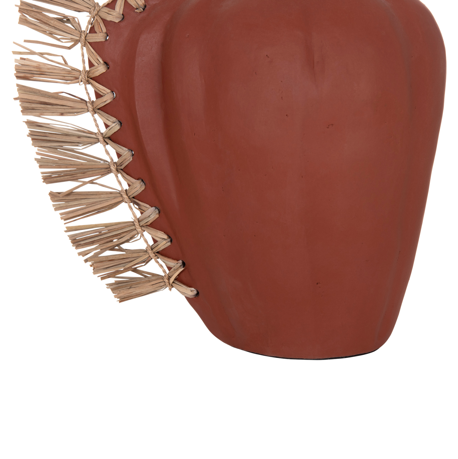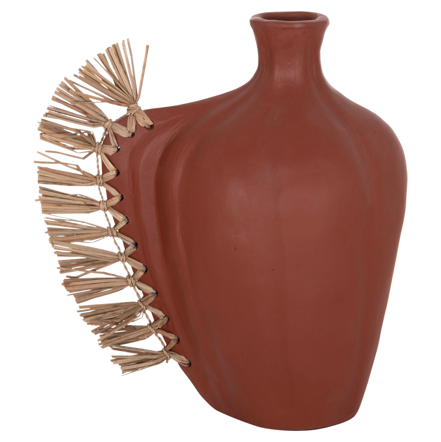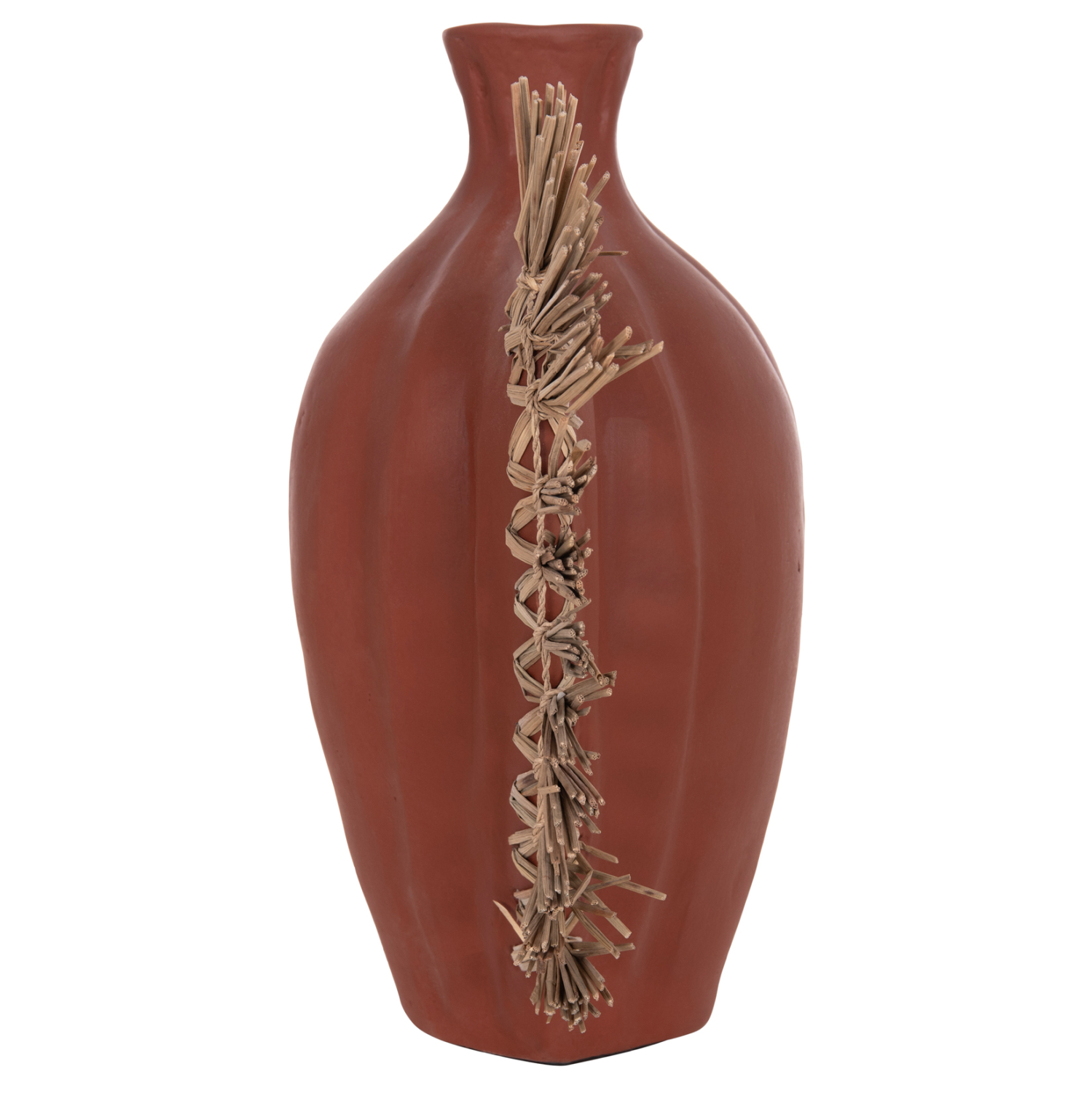 Το επιτραπέζιο χειροποίητο διακοσμητικό βάζο FB94689.08 διαθέτει στενό στόμιο και είναι ένα πολύ ιδιαίτερο διακοσμητικό στοιχείο για κάθε χώρο. Ακολουθώντας την τελευταία τάση στην εσωτερική διακόσμηση, είναι κατασκευασμένο εξολοκλήρου από σχεδόν σαγρέ τερακότα στο ΦΥΣΙΚΟ της χρώμα, ενώ στην μία πλευρά διαθέτει διακόσμηση με αποξηραμένο grass.
