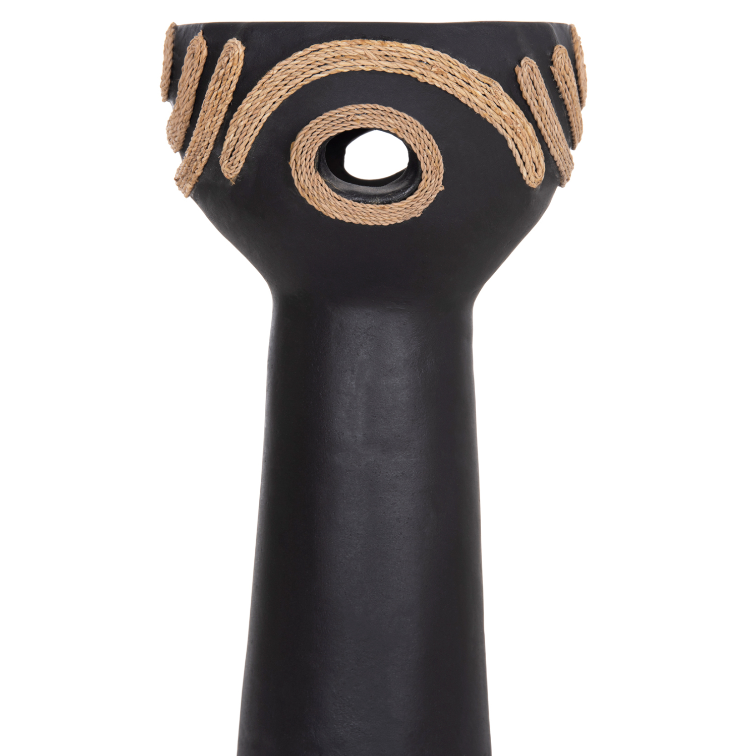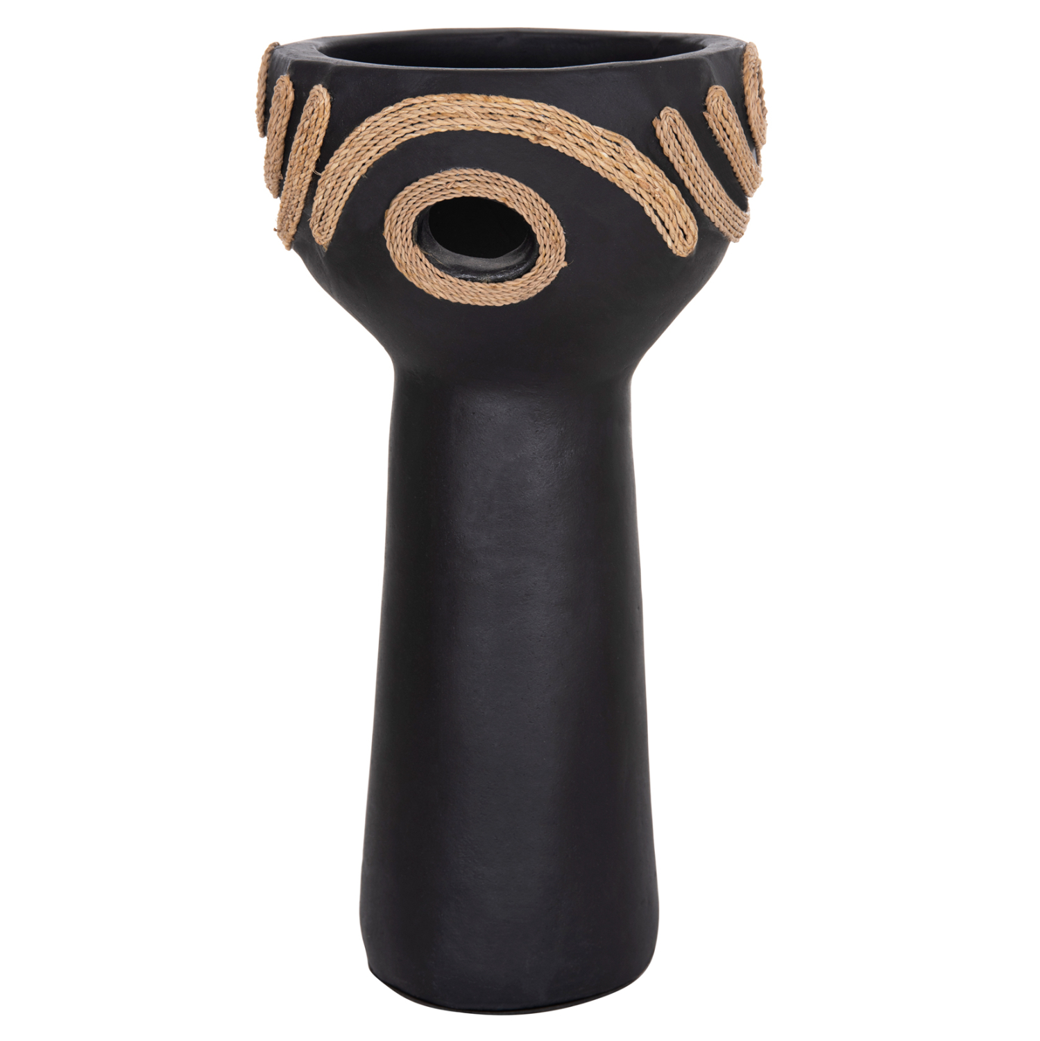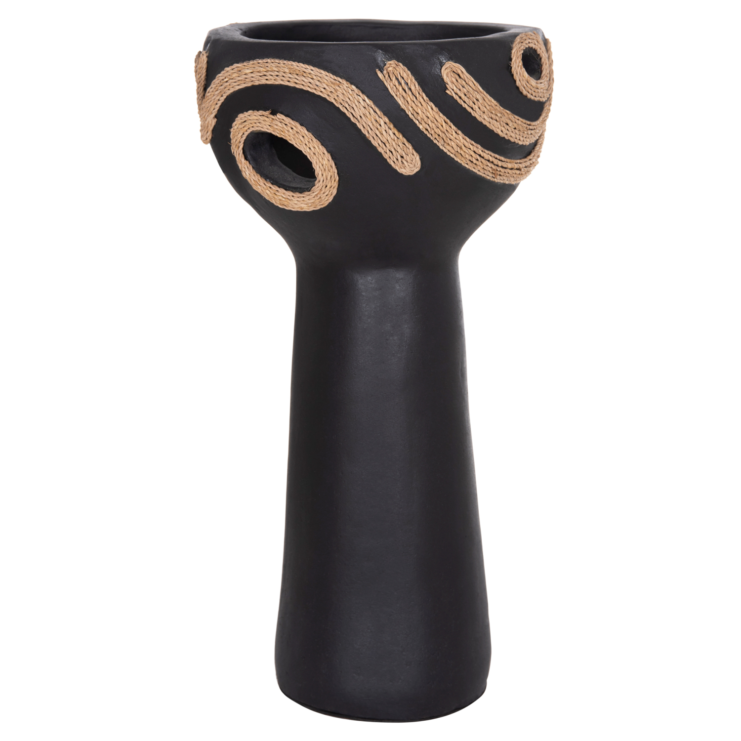 Το FB94679.01 είναι ένα εντυπωσιακό διακοσμητικό βάζο σε σχήμα ψηλού κυπέλλου που προσθέτει χαρακτήρα και ένταση σε κάθε χώρο. Η μαύρη τερακότα δημιουργεί μια δυναμική, γήινη παρουσία, ενώ η διακόσμηση με σχοινί agel πλευρικά προσφέρει φυσική υφή και αυθεντικό, χειροποίητο ύφος. Ιδανικό για κονσόλες, τραπέζια ή επαγγελματικούς χώρους που αναζητούν ιδιαίτερες λεπτομέρειες με premium αισθητική.