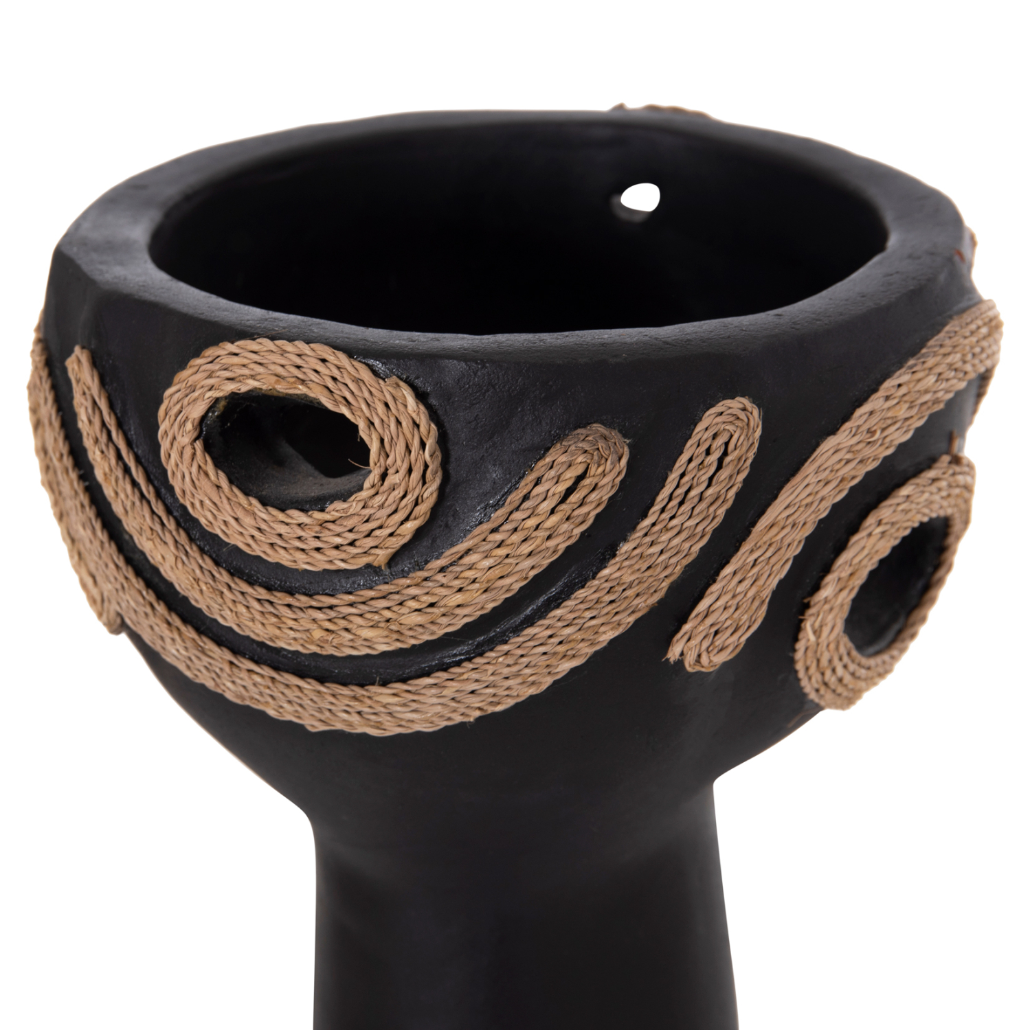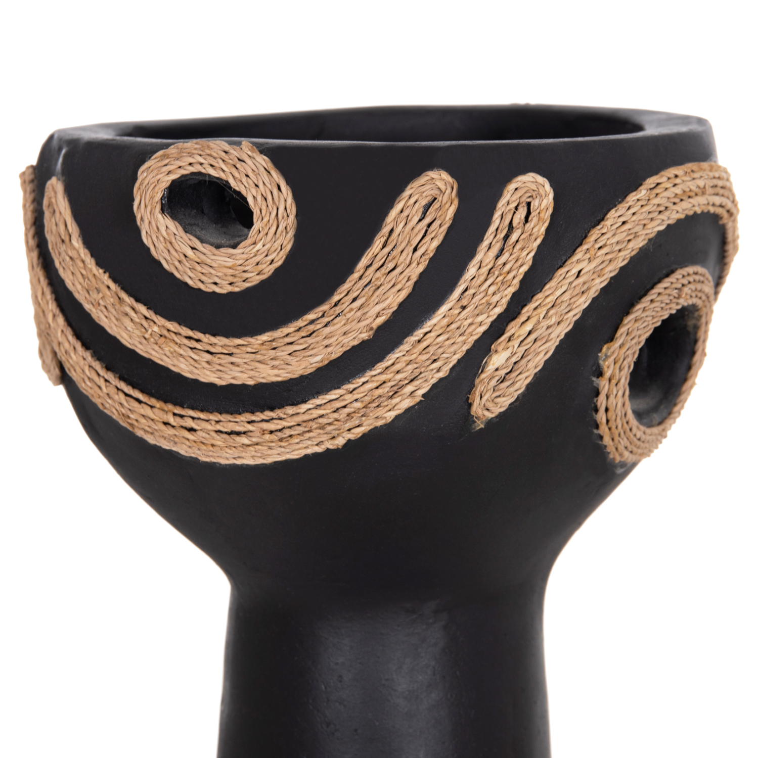 • Ο συνδυασμός μαύρης τερακότας και φυσικού σχοινιού.
