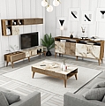 Η σύνθεση FB911845.03 θα αλλάξει την όψη στο σαλόνι σας και θα σας προσφέρει την αναβάθμιση που θέλετε. Αποτελείται από έναν συνδυασμό επίπλων για την τηλεόρασή σας με μονάδα δαπέδου και επιτοίχια ράφια, ένα τραπεζάκι σαλονιού, και έναν μπουφέ. Όλη η σύνθεση είναι της ίδιας σειράς και τα κυρίαρχα χρώματα είναι το ΚΑΡΥΔΙ και το ΛΕΥΚΟ ΜΑΡΜΑΡΟ.