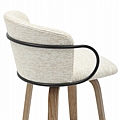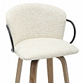 Το FB99986.01 είναι ένα σκαμπό μεσαίου ύψους με πλάτη και μπράτσα για μπαρ. Τα πόδια είναι κατασκευασμένα από ξύλο (κοντρα-πλακέ θαλάσσης) σε WHITEWASH απόχρωση ενώ το στρογγυλό υποπόδιο είναι μεταλλικό σε ΜΑΥΡΟ χρώμα. Το κάθισμα και η πλάτη είναι επενδυμένα με ΕΚΡΟΥ ύφασμα ενώ τα μπράτσα με το ιδιαίτερο σχήμα είναι μεταλλικά.