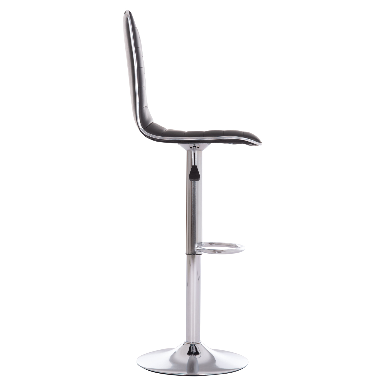 Το FB9209.21 είναι ένα λιτό και κομψό στην όψη σκαμπό για μπαρ με ΜΑΥΡΟ PU, που έχει όλα όσα θα θέλατε από ένα τέτοιο έπιπλο. Είναι περιστρεφόμενο, ψηλό με πλάτη, και η πλάτη έχει καπιτονέ τεχνοτροπία, πράγμα που επιτείνει τον ιδιαίτερο χαρακτήρα αυτού του σκαμπό. Η χρωμιωμένη μεταλλική κολώνα του σκαμπό διαθέτει και ημικυκλικό υποπόδιο ενώ καταλήγει σε έναν πανέμορφο φαρδύ δίσκο που παρέχει στήριξη και ισορροπία. Το ιδιαίτερο χαρακτηριστικό είναι η ύπαρξη αμορτισέρ για την ρύθμιση του ύψους του καθίσματος που γίνεται με έναν καλαίσθητο μοχλό κάτω από το κάθισμα.
