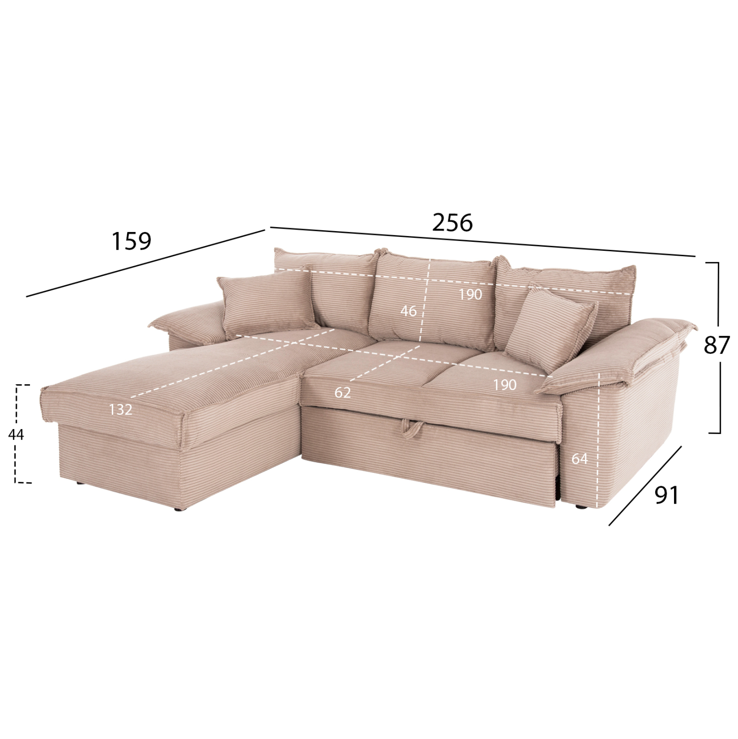 ΚΑΝΑΠΕΣ-ΚΡΕΒΑΤΙ-ΑΡΙΣΤ.ΓΩΝΙΑ ΜΕ ΑΠΟΘ.ΧΩΡΟ FB93276.01L ΜΠΕΖ ΥΦΑΣΜΑ 256x159x87Υεκ