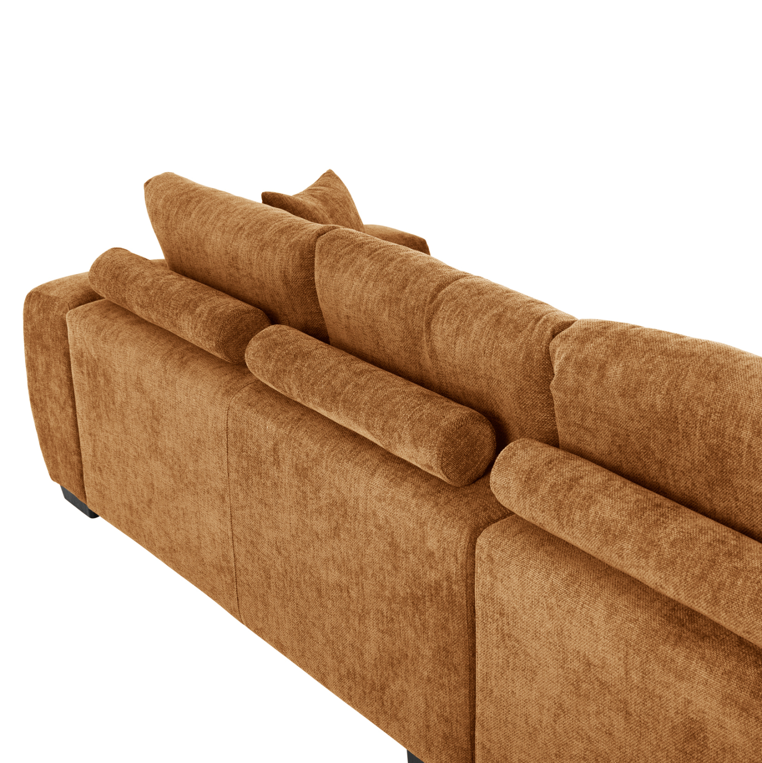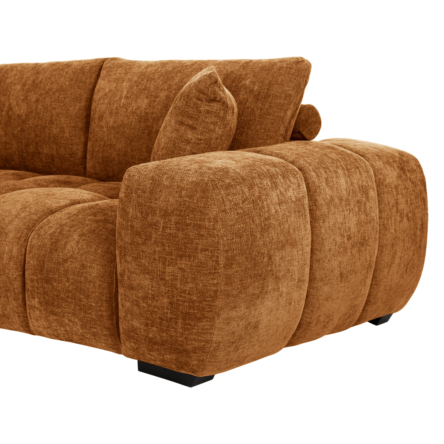 Σας παρουσιάζουμε τον FB93266.02L, έναν υπέροχο μεγάλο καναπέ σε διαμόρφωση ΑΡΙΣΤΕΡΗΣ γωνίας (όπως τον κοιτάς) επενδυμένο με ποιοτικό ύφασμα σε χρώμα ΚΕΡΑΜΙΔΙ. Ξεκινώντας από το design, ο καναπές φτάνει μέχρι πολύ χαμηλά σε στυλ «ποδιάς» και διαθέτει φαρδιά χαμηλά πόδια-βάσεις σε μαύρο χρώμα. Τα μπράτσα είναι εντυπωσιακά φαρδιά, ενώ η επένδυση είναι σε στυλ καπιτονέ με τις έντονες ραφές! Το κομμάτι που σχηματίζει την γωνία είναι ίδιας αισθητικής και ενώνεται με τον κυρίως καναπέ με κατακόρυφους αναρτήρες πάνελ. Η πλάτη είναι χαμηλή και διαθέτει 4 μαξιλάρια πλάτης με «καραμέλες»(μακρόστενα κυλινδρικά μαξιλάρια) στο πίσω μέρος τους για καλύτερη στήριξη, αλλά και 3 μικρότερα διακοσμητικά μαξιλαράκια. Το κάθισμα διαθέτει γεμίσματα αφρού μεσαίας σκληρότητας σε συνδυασμό με ελατήρια pocket springs, προσφέροντας απαράμιλλη άνεση. Και φυσικά, σας προσφέρουμε αυτόν τον καναπέ με εγγύηση σκελετού 3 ετών!