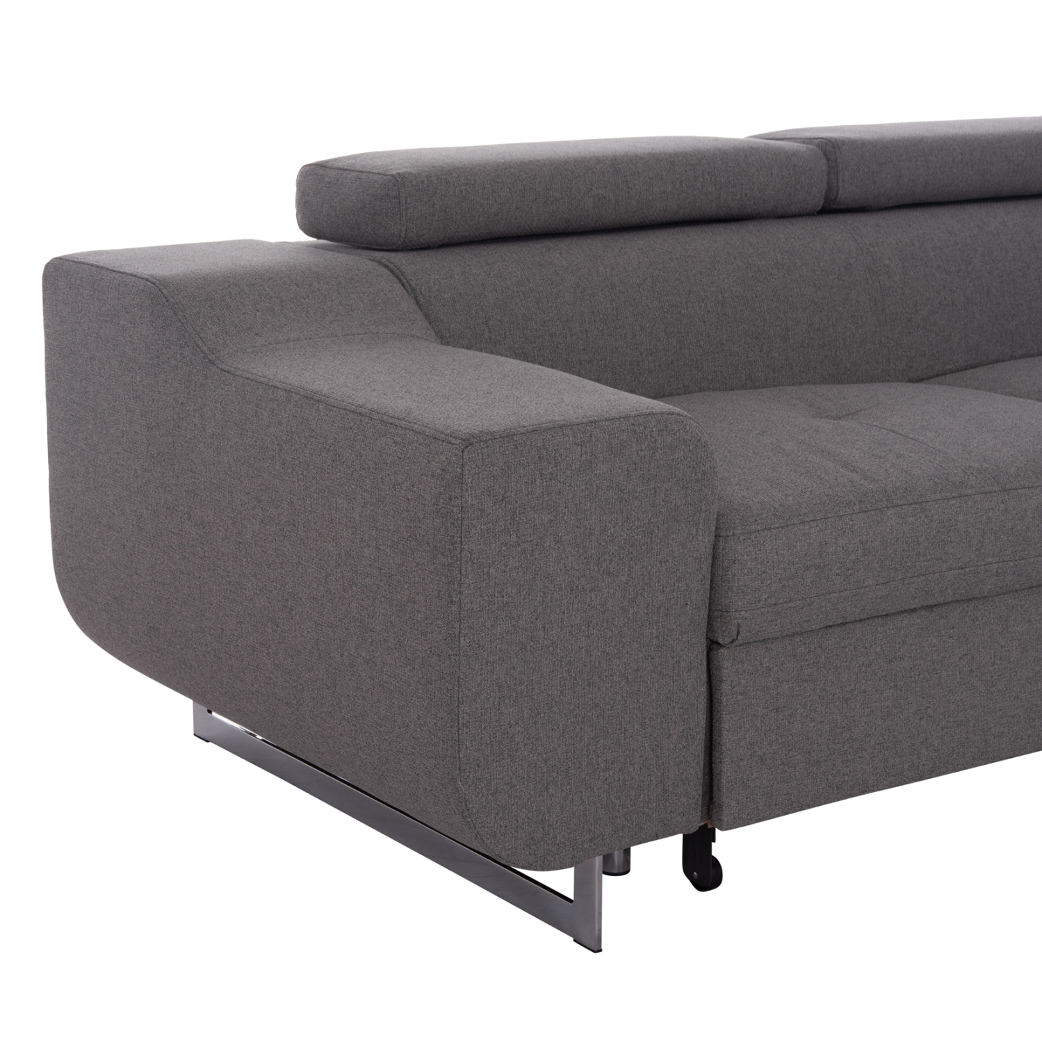Ο FB93301.01R είναι ένας εξαιρετικός γωνιακός καναπές-κρεβάτι. Η επένδυσή του είναι με εξαιρετικής ποιότητας ΓΚΡΙ "easy clean"* ύφασμα και τα πόδια είναι μεταλλικά και ψηλά. Τα χαρακτηριστικά του, όμως, τον κάνουν να ξεχωρίζει από κάθε άποψη! Η πλευρά που σχηματίζει την μόνιμη ΔΕΞΙΑ γωνία διαθέτει αποθηκευτικό χώρο ο οποίος είναι προσβάσιμος χάρη σε έναν εύχρηστο μηχανισμό με χερούλι-ιμάντα που ανασηκώνει το κάθισμα και το κρατάει ανασηκωμένο για να μπορείτε απερίσπαστοι να βάζετε και να βγάζετε ότι θέλετε. Το κρεβάτι σχηματίζεται τραβώντας το κάτω μέρος της αριστερής πλευράς και ανασηκώνοντας το εξτρά στρώμα (ράντζο) που είναι τοποθετημένο εκεί. Τέλος, τα 3 προσκέφαλα (εκτός της γωνίας) είναι ρυθμιζόμενα με λειτουργία recline, ολοκληρώνοντας με τον καλύτερο τρόπο την απαράμιλλη πρακτικότητα αυτού του υπέροχου καναπέ.