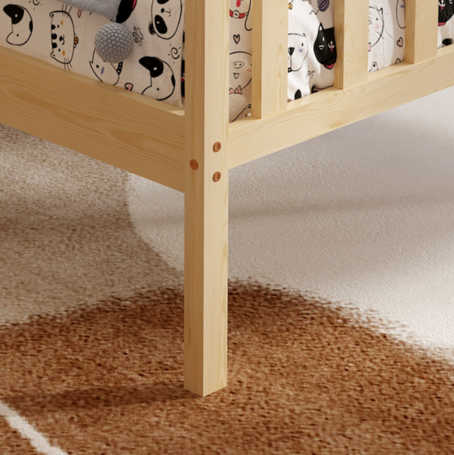 Το κρεβάτι είναι εξολοκλήρου κατασκευασμένο από μασίφ ξύλο πεύκου. Το πεύκο είναι ένα μαλακό, λευκό ή ανοιχτό κίτρινο ξύλο το οποίο είναι ελαφρύ σε βάρος με ευθύγραμμα νερά ξύλου και αντέχει στη συρρίκνωση, την διόγκωση και την κάμψη.
