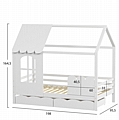 Το FB9710.03 είναι ακόμα ένα καινούργιο παιδικό κρεβάτι τύπου Montessori που σημαίνει ότι έχει σχεδιαστεί σύμφωνα με το εκπαιδευτικό σύστημα Montessori, κατά το οποίο τα παιδιά μαθαίνουν καλύτερα, όταν επιλέγουν μόνα τους τι θα κάνουν. Το χαμηλό ύψος κρεβατιού χωρίς πόδια, βοηθά να εξερευνούν την αυτονομία τους και να ανεβοκατεβαίνουν από το κρεβάτι τους ελεύθερα ανά πάσα στιγμή. Είναι σε διάσταση για μονό στρώμα 90x190 εκ, και αποτελεί μια άριστης ποιότητας, μοντέρνα και ασφαλή επιλογή για το παιδικό δωμάτιο. Είναι ξύλινο σε ΛΕΥΚΟ χρώμα βαμμένο με αβλαβές μη τοξικό βερνίκι με βάση το νερό, ιδανικό για παιδιά. Το στρώμα τοποθετείται σε τάβλες κατασκευασμένες από ξυλεία κόντρα πλακέ. Ολόκληρο το κρεβάτι έχει σχήμα σπιτιού με παραθυράκι, που θα δώσει μια ευχάριστη, «ζεστή», και παιχνιδιάρικη όψη σε κάθε παιδικό δωμάτιο. Πέρα, όμως, από ευχάριστο στην όψη, αυτό το κρεβάτι είναι και πρακτικό αφού διαθέτει 2 μεγάλα συρτάρια στην κάτω πλευρά, για να αποθηκεύετε οτιδήποτε χρειαστεί.