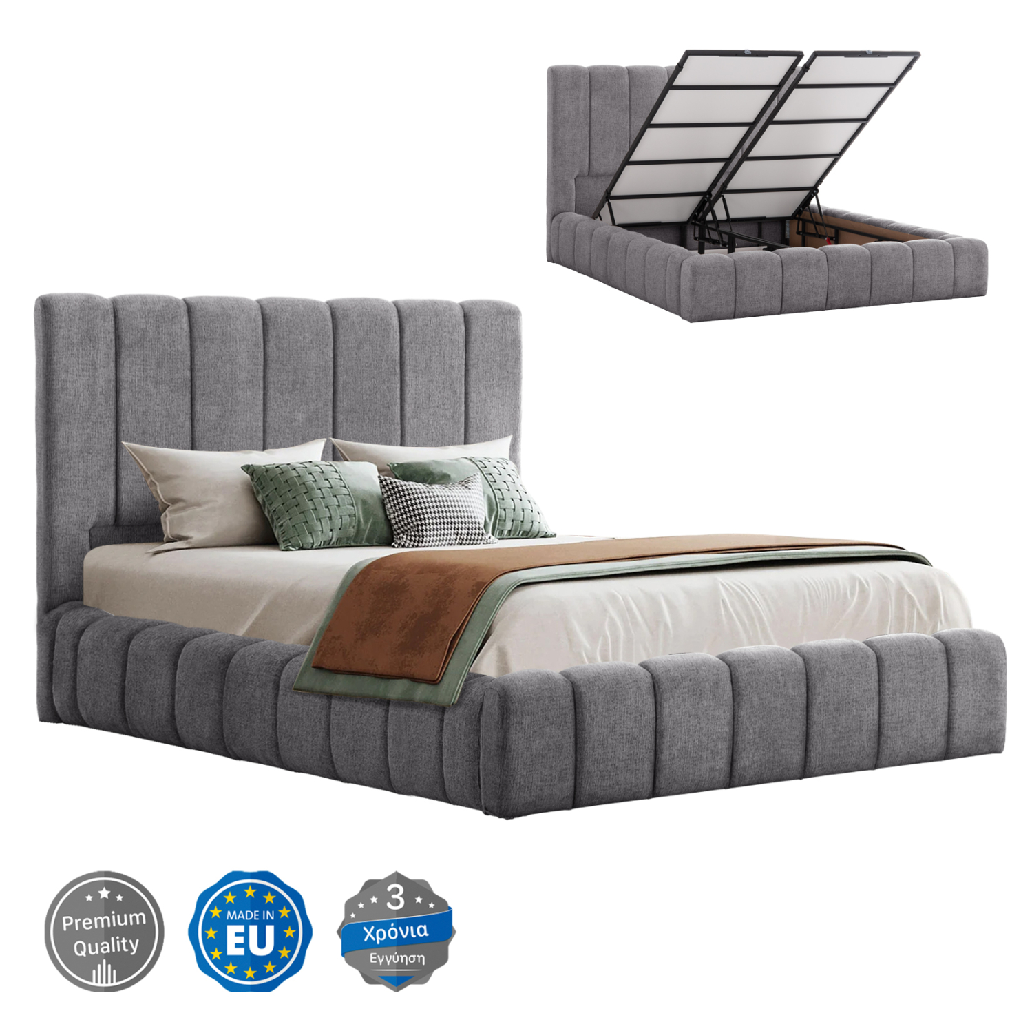 ΚΡΕΒΑΤΙ ΜΕ ΑΠΟΘΗΚΕΥΤΙΚΟ ΧΩΡΟ FB9719.22 ΥΦΑΣΜΑ TEDDY ΓΚΡΙ-ΓΙΑ ΣΤΡΩΜΑ 160x200εκ